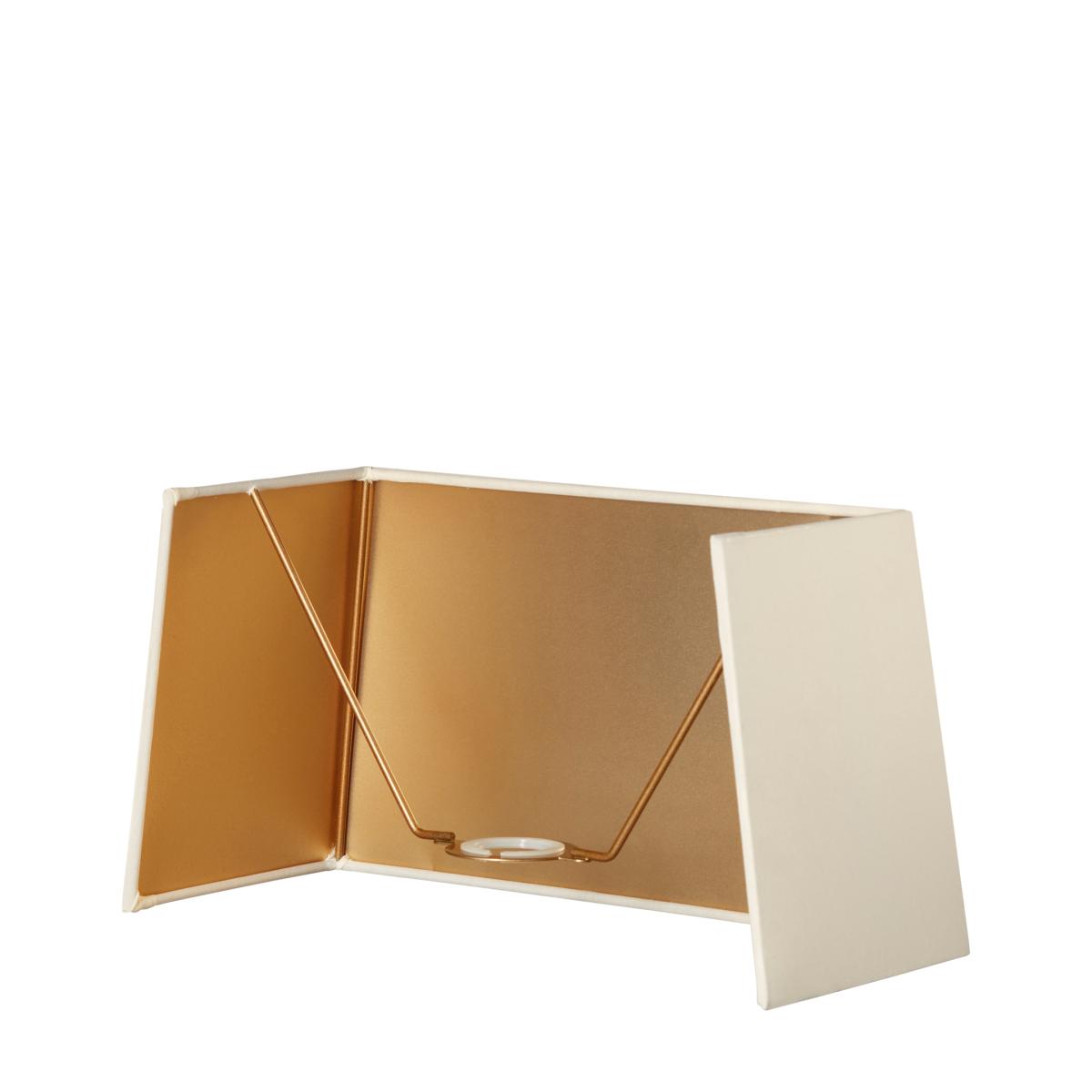 This half rectangular card lampshade is ideal for using with wall lamps as it sits flush against the wall. Features a gold metallic inside to reflect maximum light.