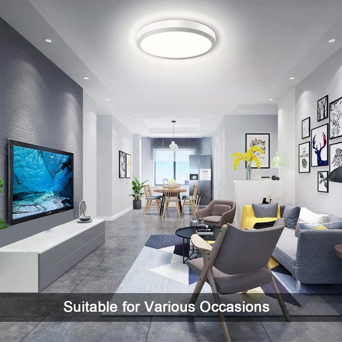 I really like this round LED ceiling light for its clean, minimalist aesthetic and practical versatility. The cold white tone makes it ideal for modern kitchens, offices, or bathroom spaces where bright, crisp illumination is needed. Its flush mount design ensures a sleek, unobtrusive look that works especially well in rooms with lower ceilings, creating an open and airy feel. When styling around it, consider pairing with other simple, contemporary fixtures or adding colour accents through furnishings to balance its starkness. Additionally, it’s worth noting that the neutral white makes it adaptable across various colour schemes, while its energy efficiency and long lifespan make it a smart functional choice for everyday spaces.