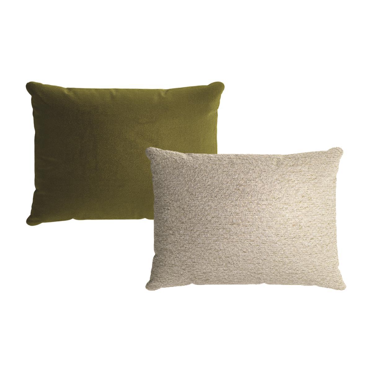 38x55cm Textured Boucle Scatter Cushion in Alpaca with Olive Cotton Matt Velvet reverse - sofa.com