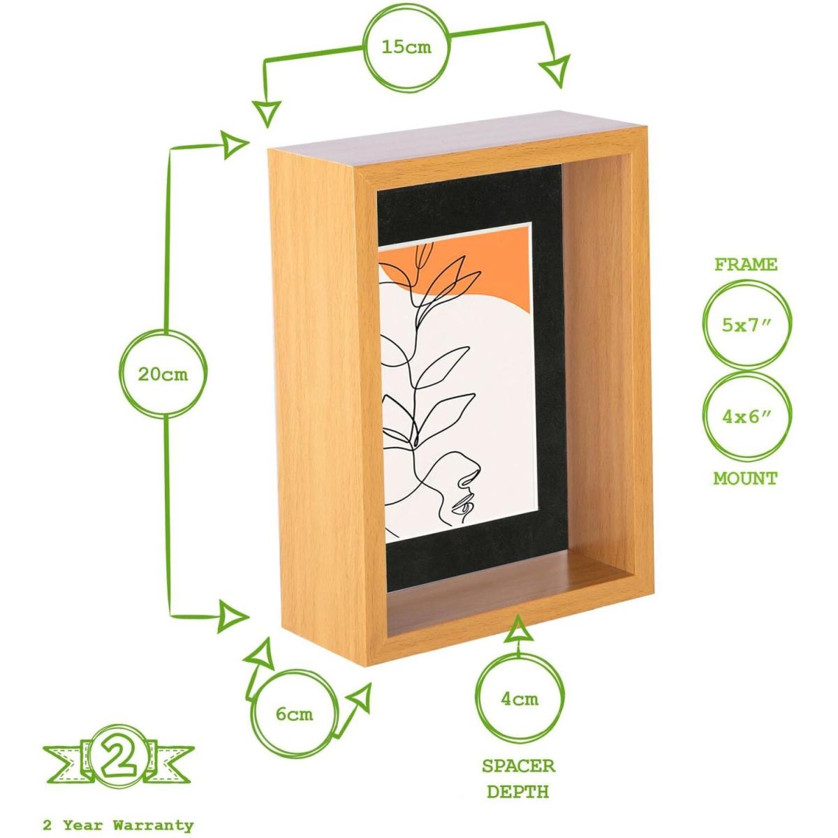 Upgrade your artwork or proudly display your favourite family photos with this Light Wood 5 x 7" Box Picture Frame from Nicola Spring. The ultimate way to turn a house into a home is of course those final finishing touches and nothing creates a more personal feeling like photos of your cherished memories. Our Nicola Spring 3D Box Frames are ideal if youre looking to add a modern and minimal touch to your walls, with bold lines and a dynamic floating effect which allows the imagery to do the talking. Each frame in our collection has been crafted from acrylic for the optimum blend of lightness and durability. Multiple hanging points on the reverse allow for seamless display in either portrait or landscape, while a neat folding strut offers that same flexibility for standing on a table, shelf, or mantlepiece. What truly sets these frames apart from the competition, however, is the cover a sheet of genuine glass that bathes the photography or artwork behind it, providing a luxurious shine. For a final Piece de resistance, these frames come with a removable 'spacer frame' that gives you the choice of three display positions. Combine all three across multiple frames for a striking multi-dimensional effect!