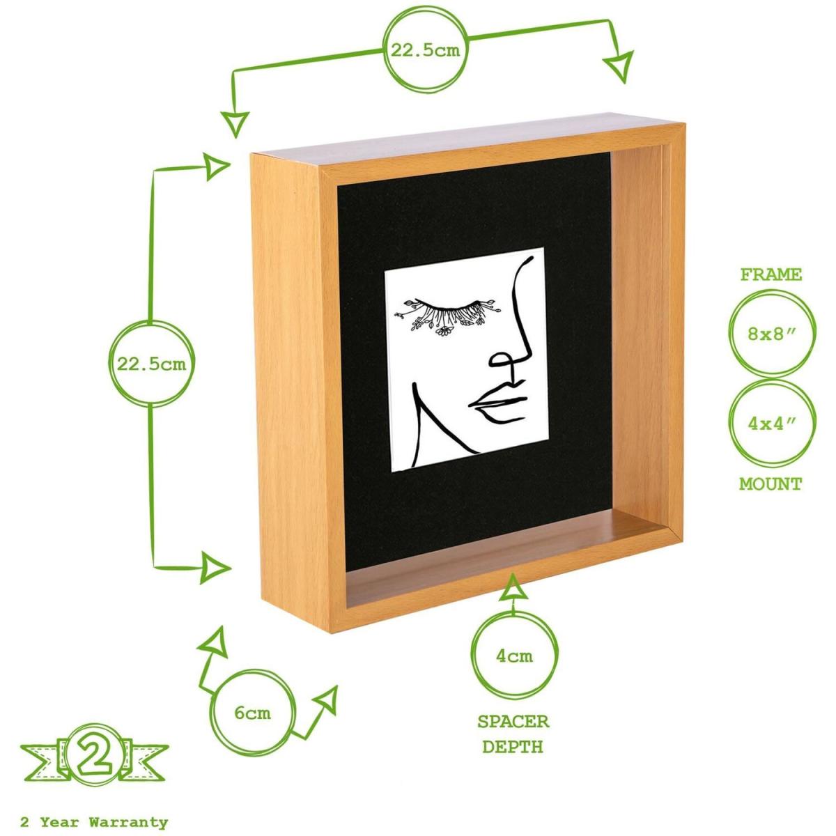 Upgrade your artwork or proudly display your favourite family photos with this Set of 2 Light Wood 8 x 8" Box Picture Frame from Nicola Spring. The ultimate way to turn a house into a home is of course those final finishing touches and nothing creates a more personal feeling like photos of your cherished memories. Our Nicola Spring 3D Box Frames are ideal if youre looking to add a modern and minimal touch to your walls, with bold lines and a dynamic floating effect which allows the imagery to do the talking. Each frame in our collection has been crafted from acrylic for the optimum blend of lightness and durability. Multiple hanging points on the reverse allow for seamless display in either portrait or landscape, while a neat folding strut offers that same flexibility for standing on a table, shelf, or mantlepiece. What truly sets these frames apart from the competition, however, is the cover a sheet of genuine glass that bathes the photography or artwork behind it, providing a luxurious shine. For a final Piece de resistance, these frames come with a removable 'spacer frame' that gives you the choice of three display positions. Combine all three across multiple frames for a striking multi-dimensional effect!