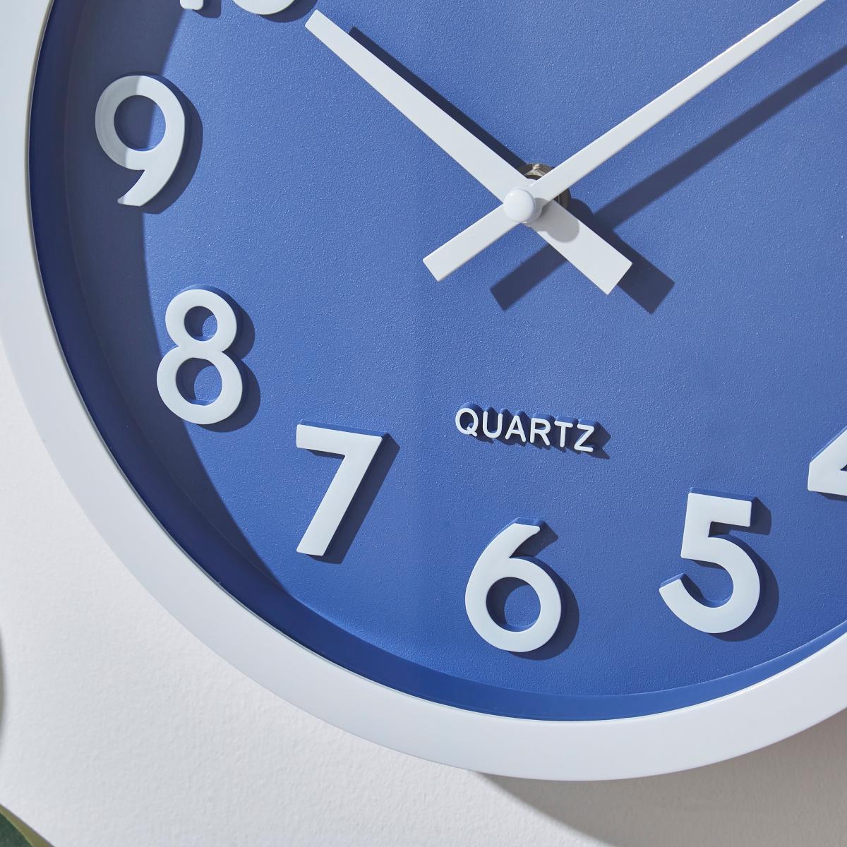 3D Numbers Wall Clock 25cm Cobalt Blue
