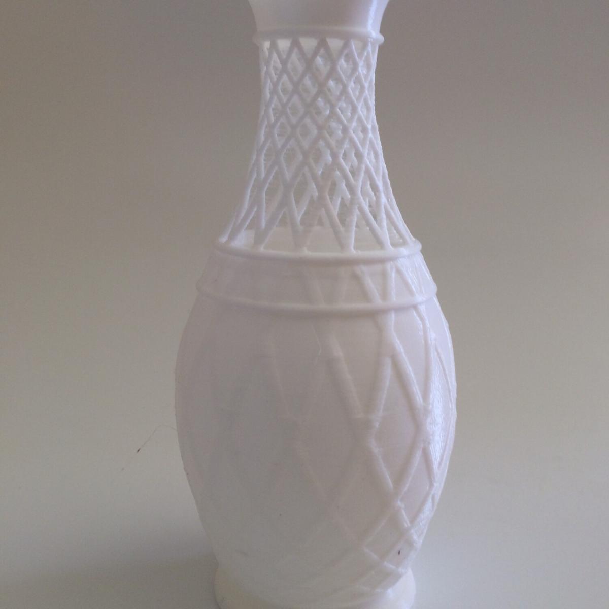 A stylish 3d printed vase with a fret top design. Available in a variety of colours to enhance any room setting. Manufactured in the UK. Recommended for artificial flowers.