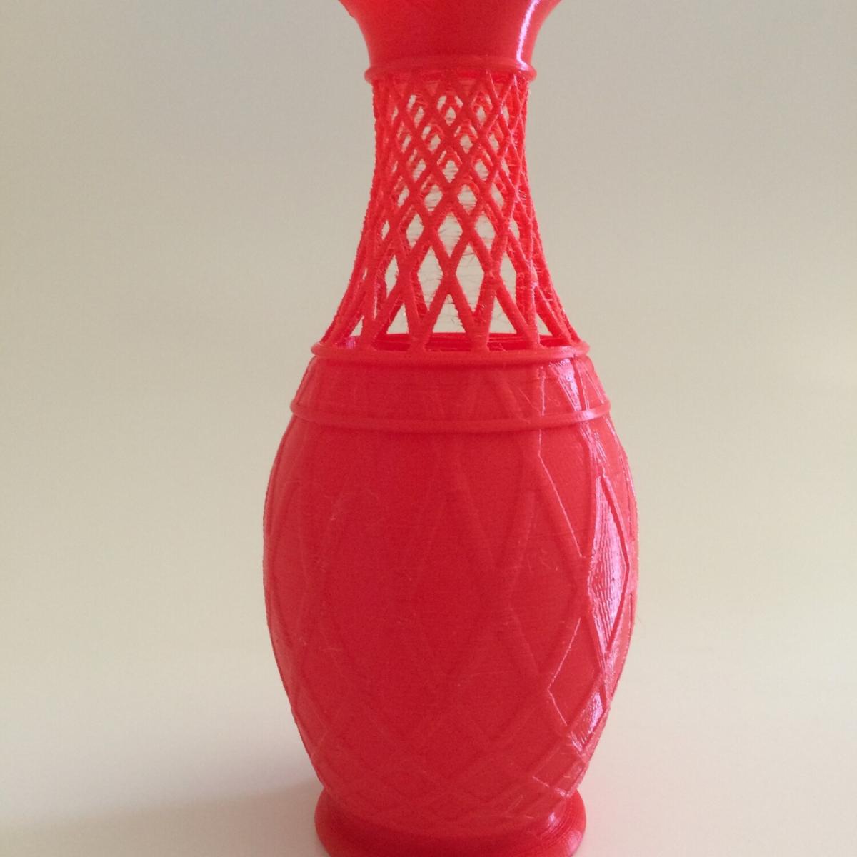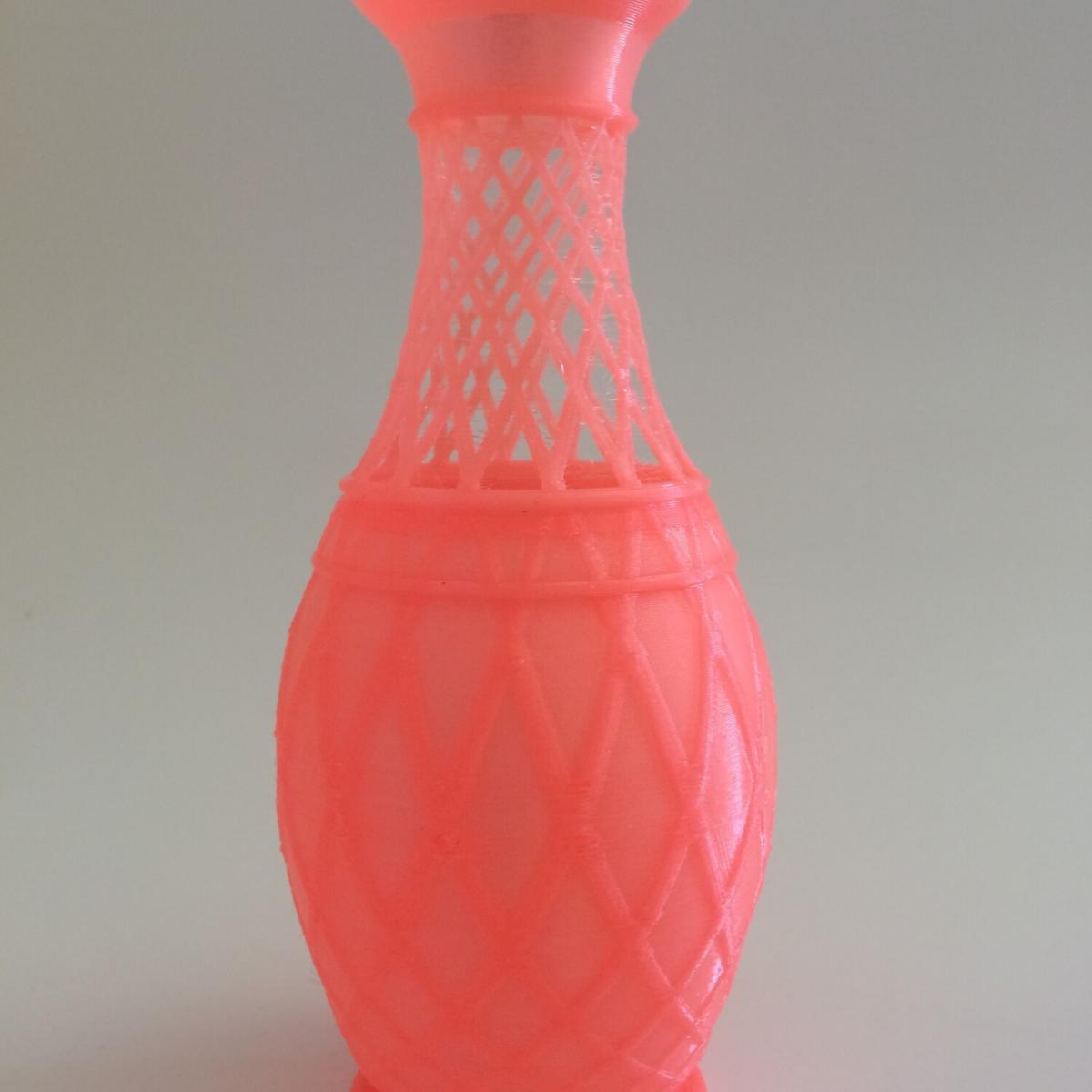 A stylish 3d printed vase with a fret top design. Available in a variety of colours to enhance any room setting. Manufactured in the UK. Recommended for artificial flowers.