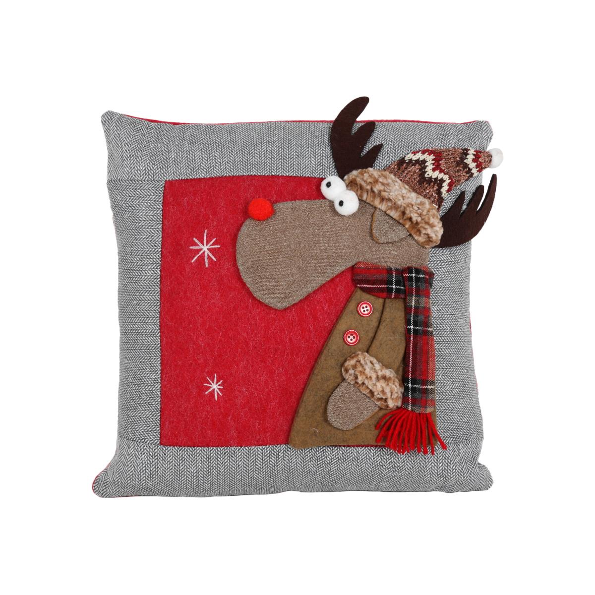 This 3D Reindeer Cushion exudes cosiness and whimsy. Perfect for a chair or sofa, this cushion features a 3D reindeer design, complete with a hat and scarf! With a herringbone border and a 3D red nose, this cushion is stylish and fun and is sure to draw the eye. It's the perfect addition to your Christmas decor.