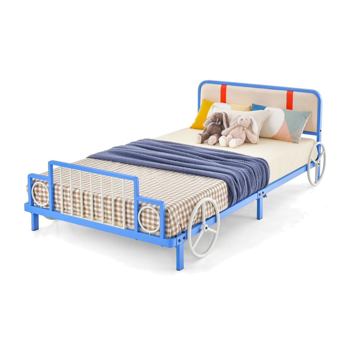 Looking for a bed that will make your child excited to go to sleep? Look no further than our adorable car-themed low-profile kids' bed frame! Standing at 18cm high, this bed frame is perfect for young children who are just starting to assert their independence. It allows your kids to get in and out of bed easily. The velvet-upholstered headboard with soft sponge padding adds maximum comfort, while the sturdy wooden boards behind it ensure long-lasting quality.