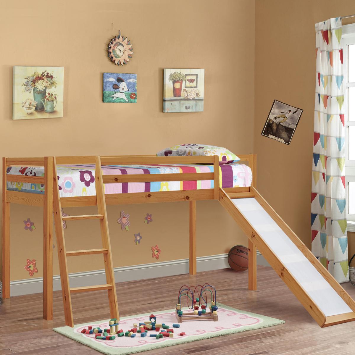 This 3ft Single mid sleeper bed is the perfect addition for any kids bedroom. Available in a choice of colours to suit your needs, there is the option to add a slide. Please note that all dimensions are approximate, please allow room for slight variations.