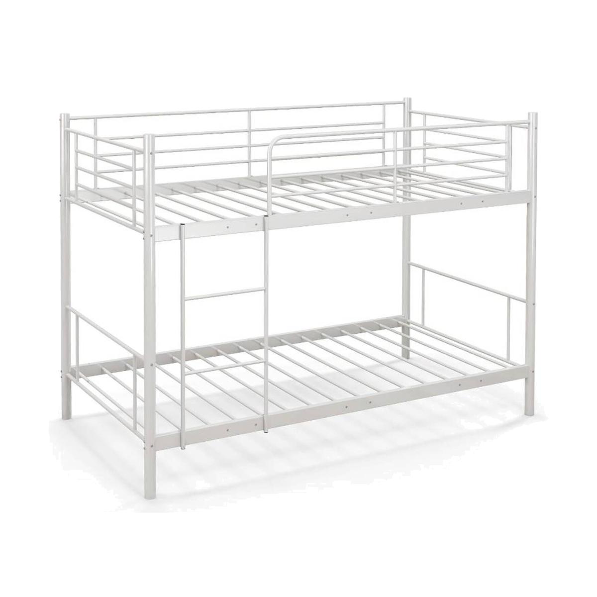 If you want a bed that perfectly combines function and style, this metal bunk bed deserves a try. Made of powder-coated metal slats, the bunk bed is super durable and stable to support long-term use. Moreover, for safety use, the slatted bed frame is designed with a high guardrail to prevent kids from falling on the bed when sleeping. There is a more kids-friendly design, such as a 3-step ladder for easy access to the upper bed. Besides, sufficient under-bed storage space helps you optimize your bedroom layout. This twin-over-twin bunk bed fully uses vertical space, which is a perfect choice for multiple-child families.