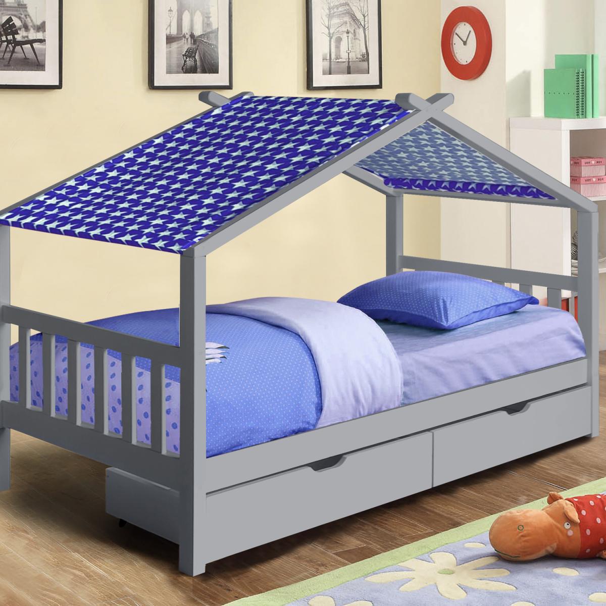 3ft Wooden House Storage Bed - Grey / Blue tent