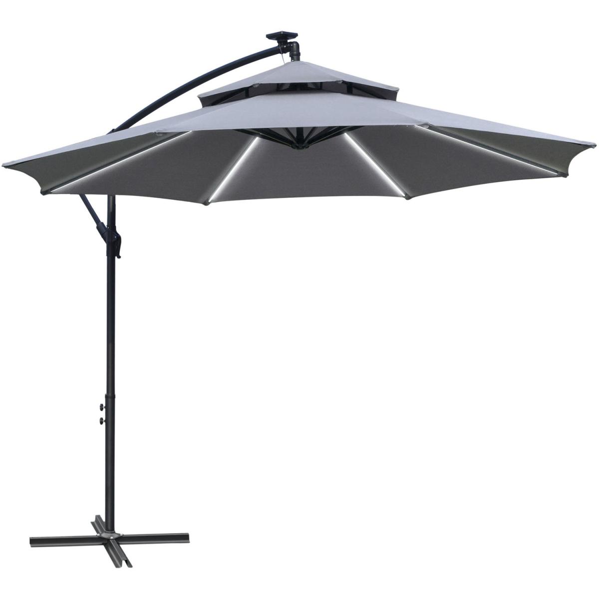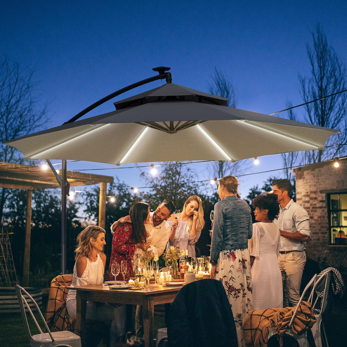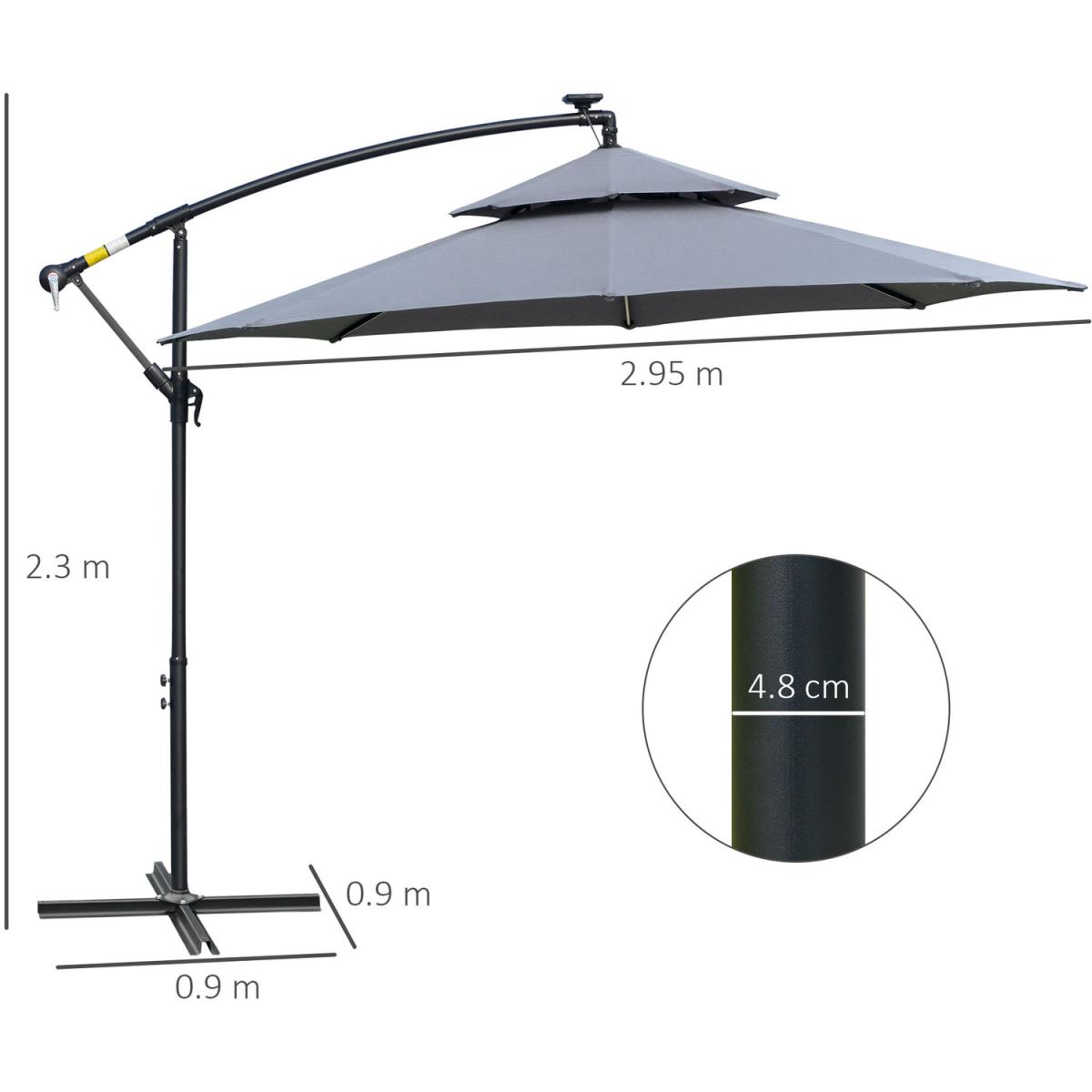3m Cantilever Banana Parasol Hanging Umbrella with Double Roof,LED - Grey
