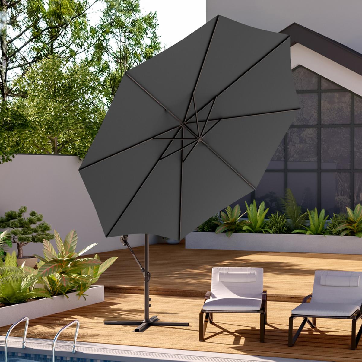 The shade is waterproof and UV-resistant, it can not only provide shelter for you when raining but also keep you cool under the hot sun. Available in a range of vintage colours, let it add some vibrancy to your place! The Parasol base structure of the cross ensures sturdiness, therefore makes it easy to carry and store yet reliable to keep the umbrella upright. What's more, it's not a problem to install it within minutes. Made from iron, it is of high quality which supports it to maintain condition after years of usage. We suggest that you put an extra 50kg weight on it to reinforce the parasol after assembly.