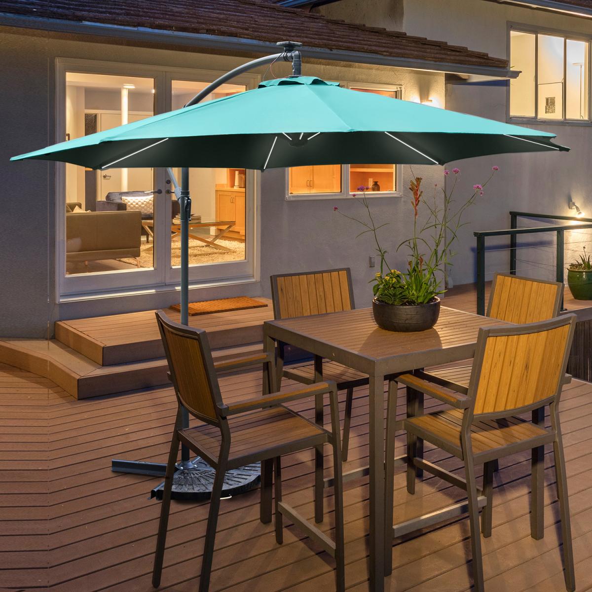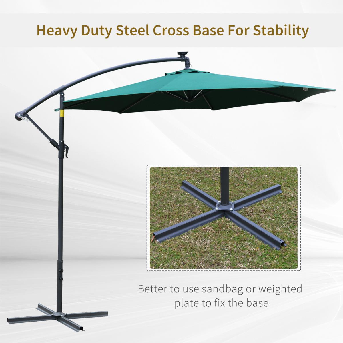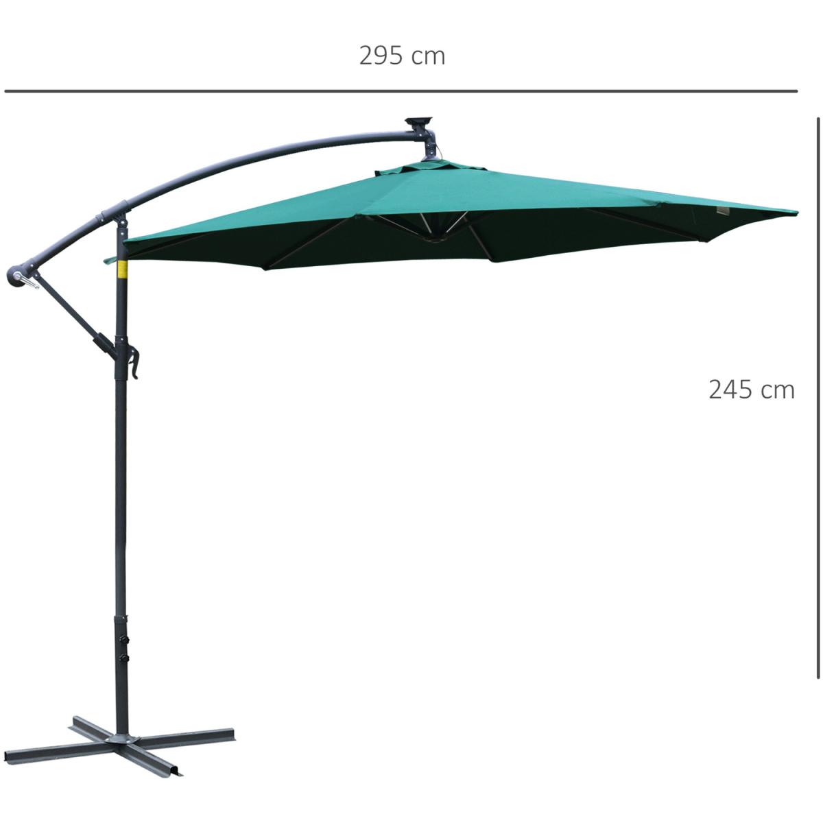 Make the summer evenings last longer with this parasol umbrella from Outsunny. In a fresh colour, it is equipped with eight solar-powered LED strips to provide you light as the sun goes down without ever needing to charge the battery. Built from rustproof steel, the frame is strong and sturdy and offers plenty of support to the canopy that is attached via eight aluminium ribs. It is finished with a comfortable crank handle that allows you to open and close the umbrella quickly - perfect for when you need shade instantly. It's the perfect item for staying out and enjoying the weather all day long.