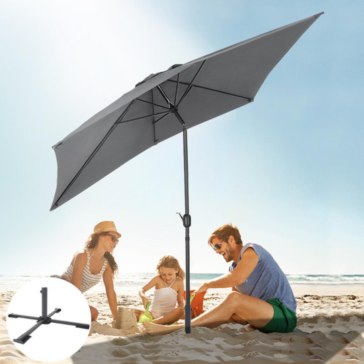 3M Rectangular Traditional Parasol With Foldable Cross Base - Dark Grey