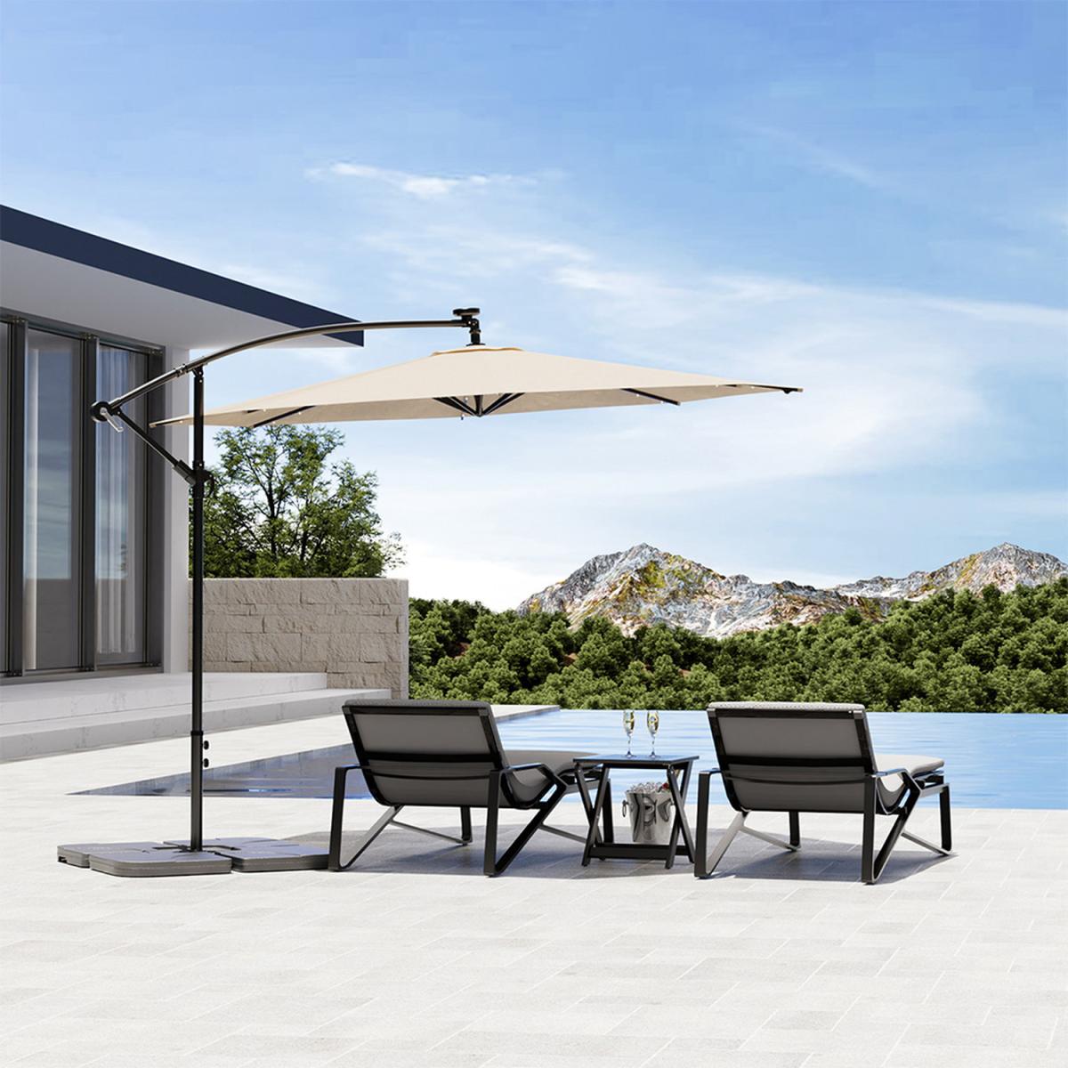 3m Solar LED Lights Parasol with Square Stand - Beige