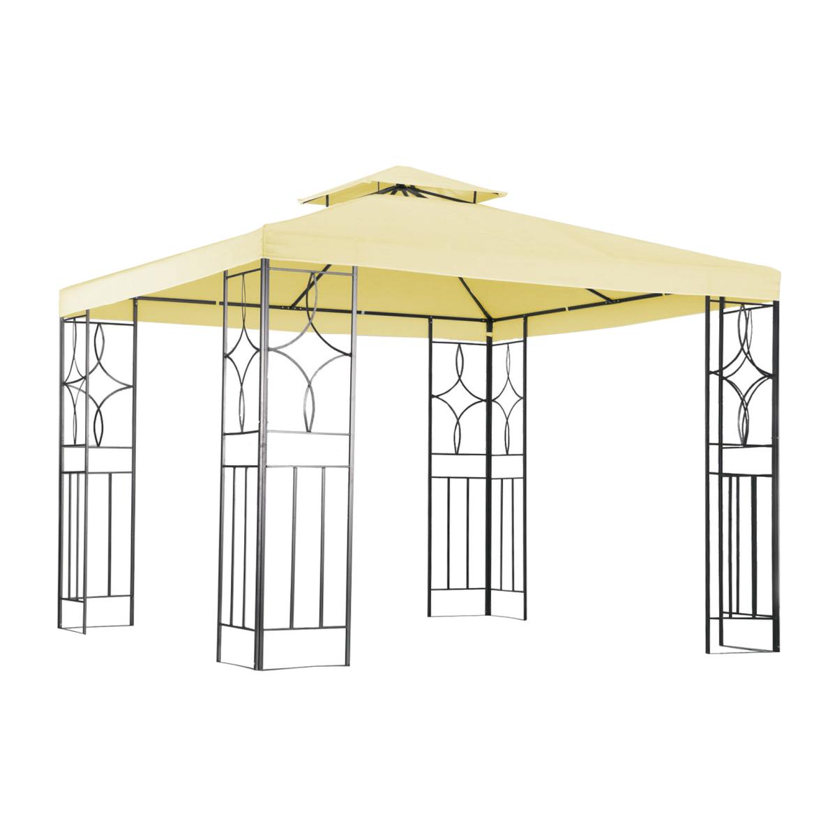 Enjoy your outdoor parties, BBQs or any other gatherings in your garden or patio regardless the weather with this luxurious outdoor gazebo. It will not only provide a perfect shelter from sun and light showers but it will also act as an impressive decoration for any celebration you might hold. Your guests will surely be more than impressed with its elegant and stylish design, featuring some intricate curved lines on its lateral panels. The frame is made of durable and strong steel and the canopy, in an elegant cream tone, features a double-top solution for a better air flow. Please Note Not suitable in adverse weather conditions, it is recommended to remove the cover between uses to extend the life span of your item.