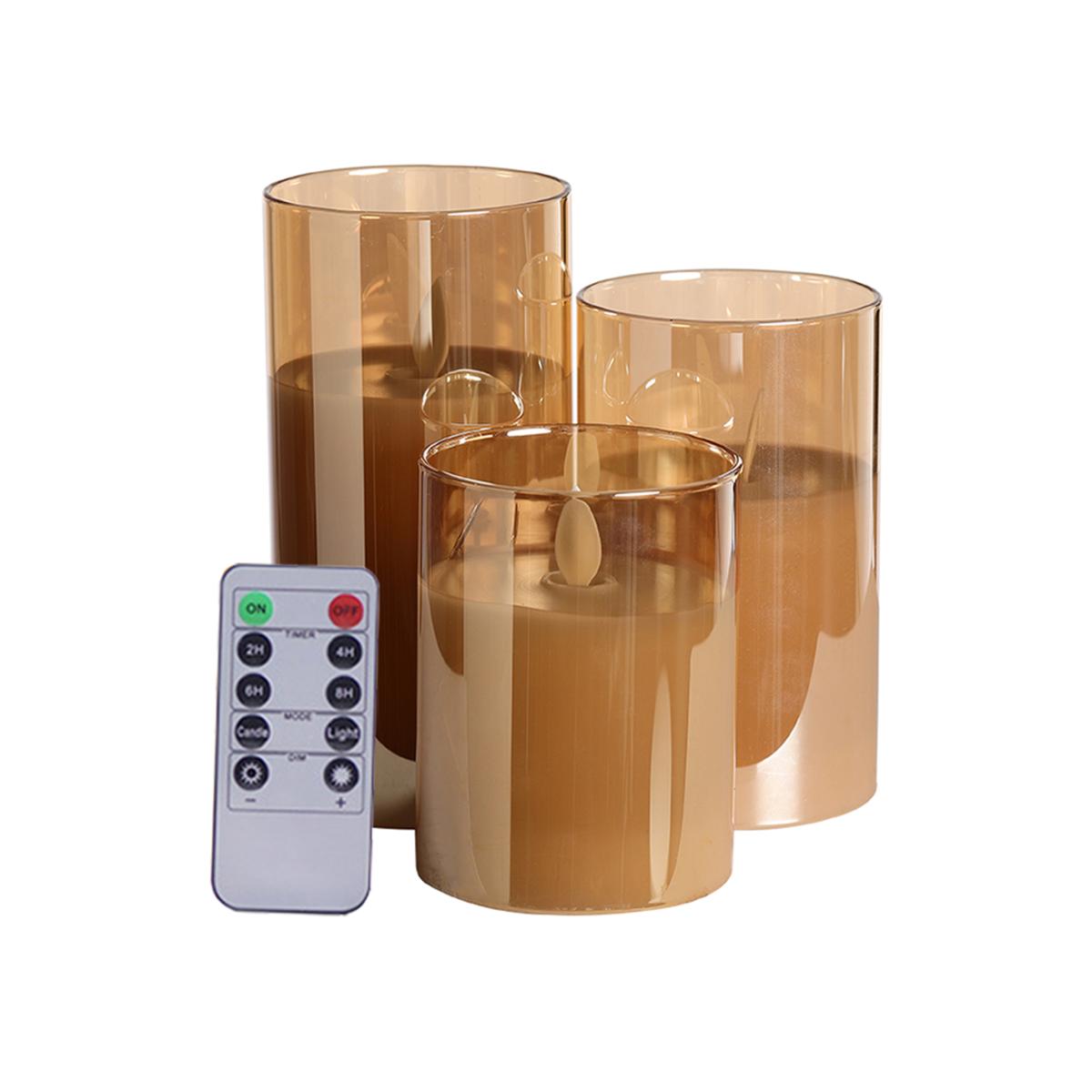 3Pcs Flameless LED Candle Set with Remote - Gold