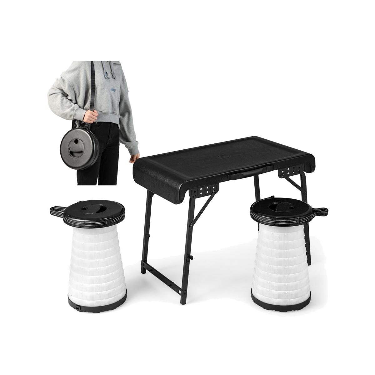I like this set for its versatility and practical appeal, especially in compact or multi-use spaces. The black finish offers a modern, unobtrusive look that works well in contemporary interiors, while the foldable stools and table make it easy to store away when not in use. It’s perfect for casual dining areas, outdoor patios, or even quirky home offices where flexibility is key. To style it effectively, consider pairing it with minimalist or industrial-inspired decor - think concrete surfaces, metal accents, or even colourful cushions on the stools for a touch of personality. When not in use, it can be tucked out of sight, keeping your space feeling uncluttered and functional.