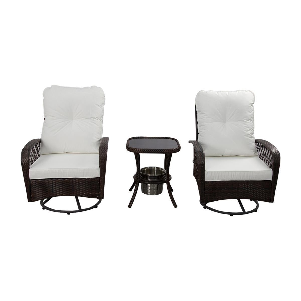 3Pcs Garden Bistro Set w Ice Bucket - Brown / SWIVEL CHAIR