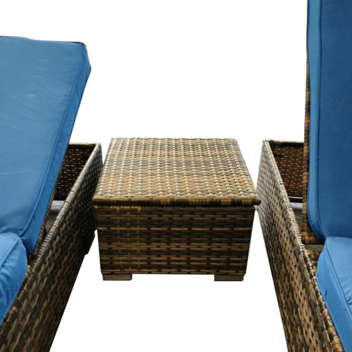 This luxury wicker lounger is the perfect complement to any outdoor environment. Its 5 adjustable positions backrest will make you comfortable and relaxed all day long. The coffee table with storage function allows you to lie down and drink coffee with your friends, talk about life, and enjoy your time. Adjustable Backrest:Level 1 (horizontal incl. cushion): height approx. 28.5cm. Level 2: height: approx. 43cm. Level 3: height: approx. 52cm. Level 4: height: approx. 61cm. Level 5: height: approx. 70cm