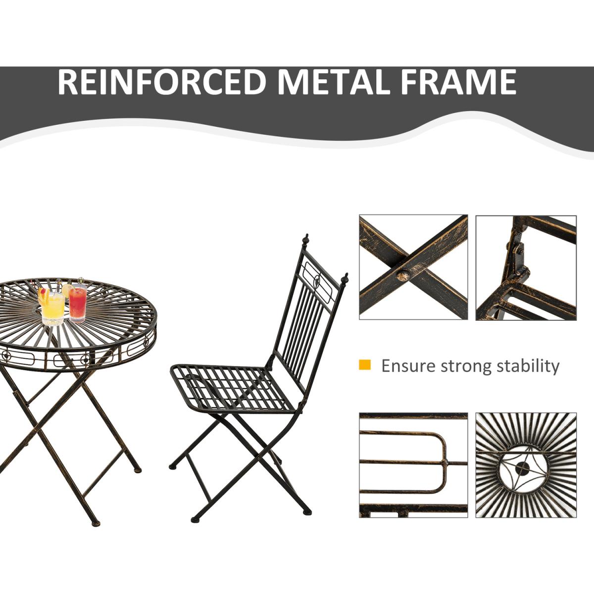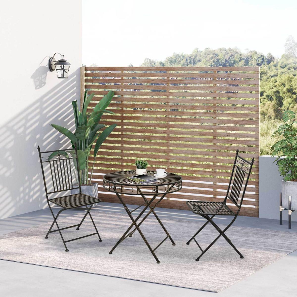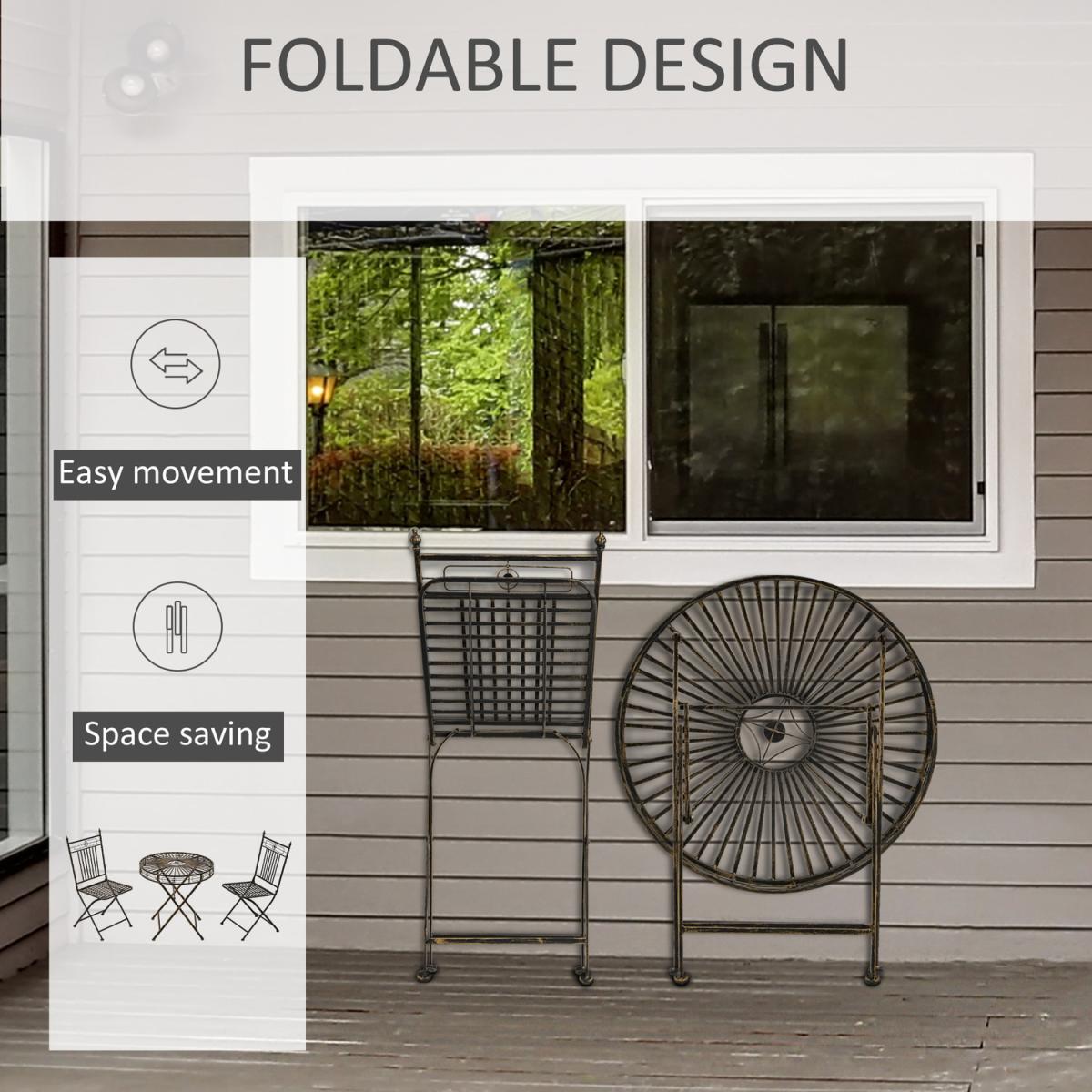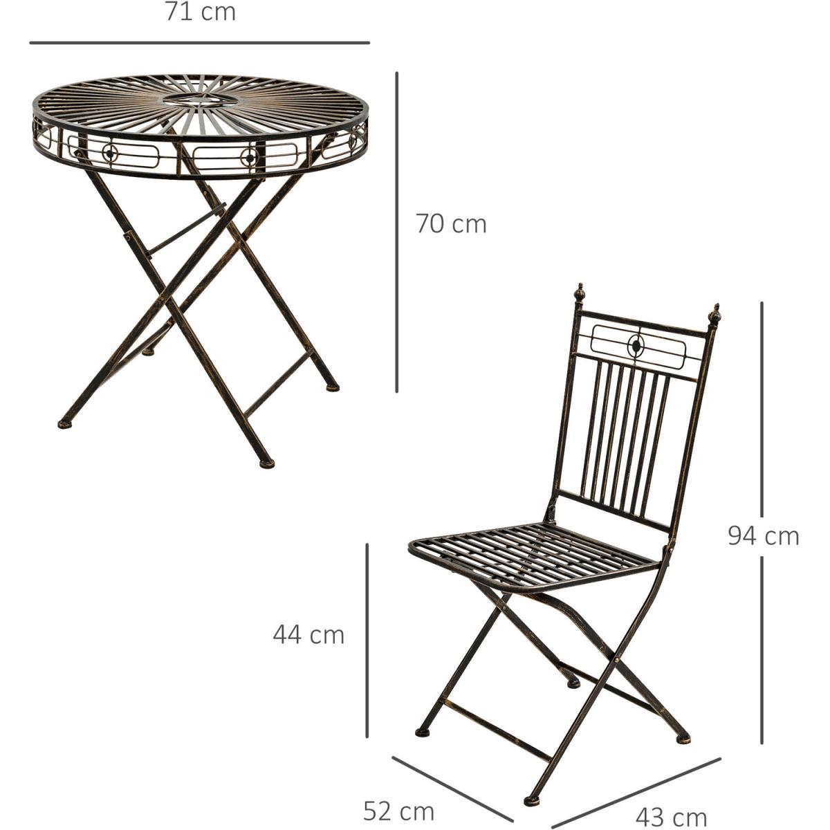 The bistro set - but not as you know it. This Outsunny three-piece set combines style with functionality. It's crafted into a cut-out design, merging lines and small dots for a unique look you'll love having in your garden and outdoor areas. Each piece is made from powder coated metal - strong and resistant to rusting and light weather damage. Two chairs and table for you to sit with company. Enjoy the sunshine, morning and evening, the right way.