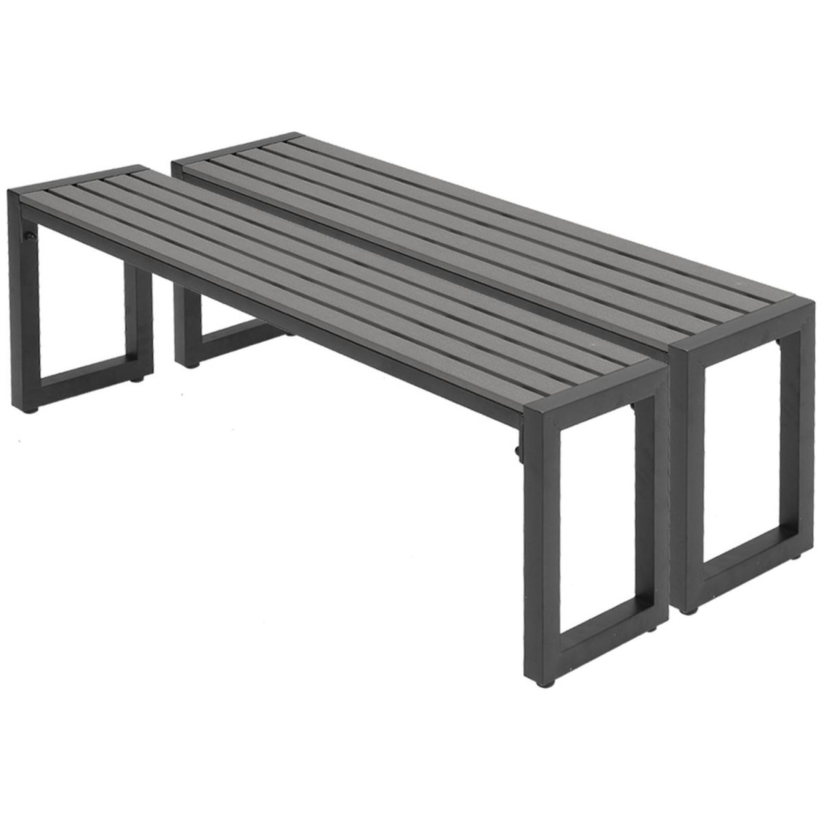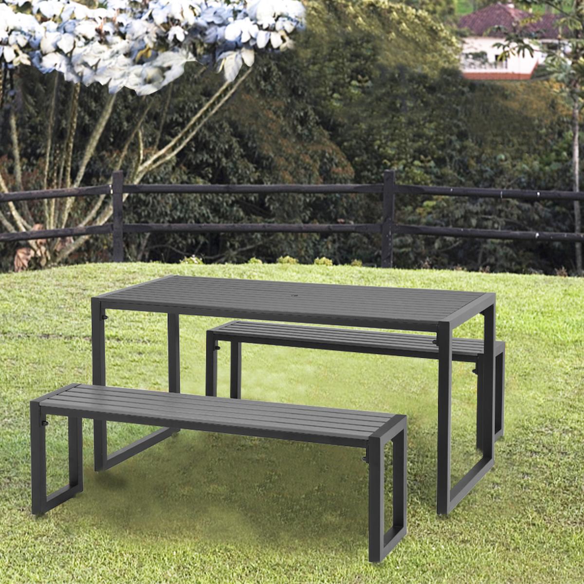 3PCS Outdoor Dining Table Set with 2 Benches - Grey / 2 Benches, 1 Dining Table