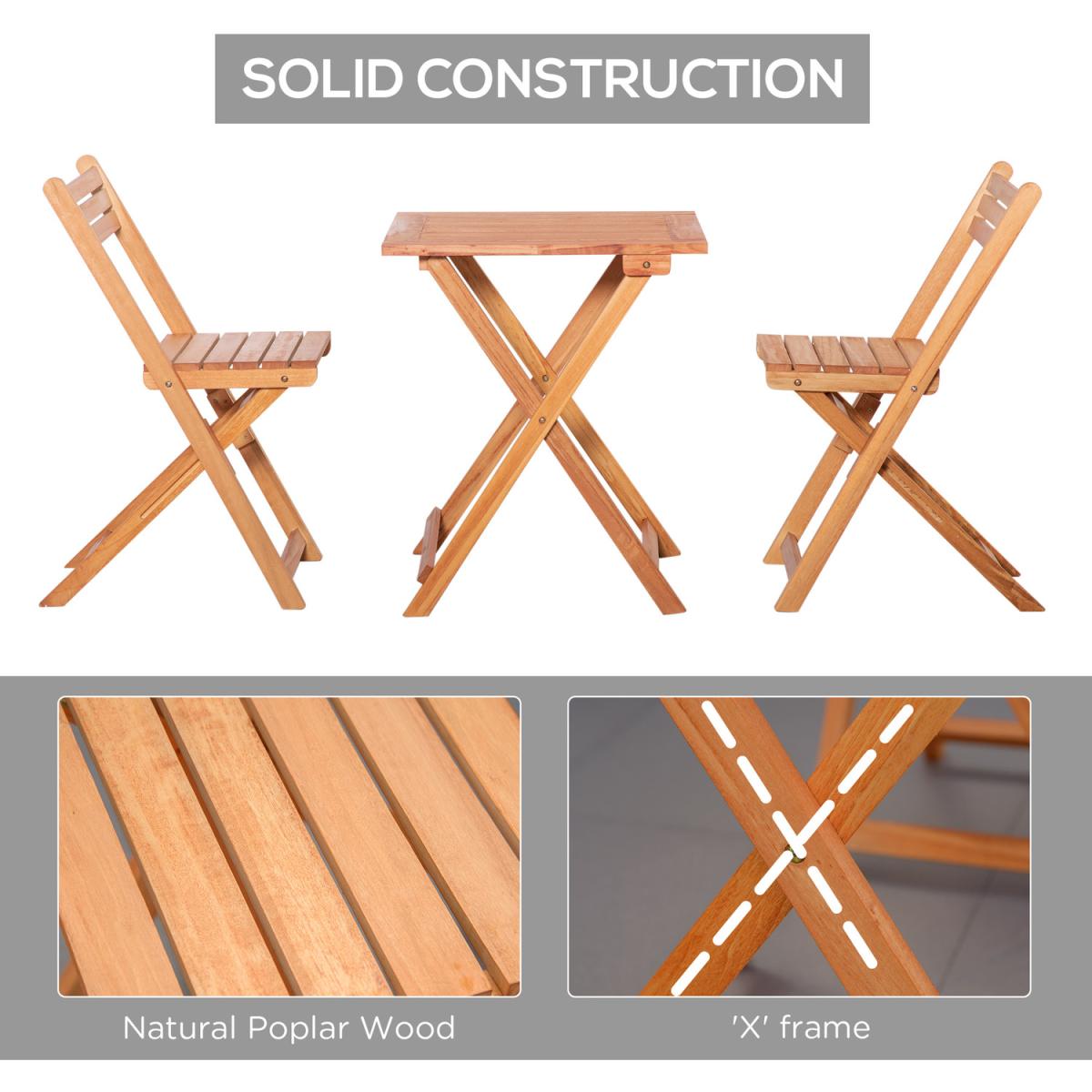 3Pcs Patio Bistro Set Garden Furniture Set Folding - Wood