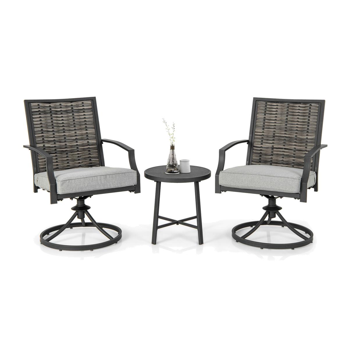 3Pcs Patio Swivel Chair and Table Set - Brown