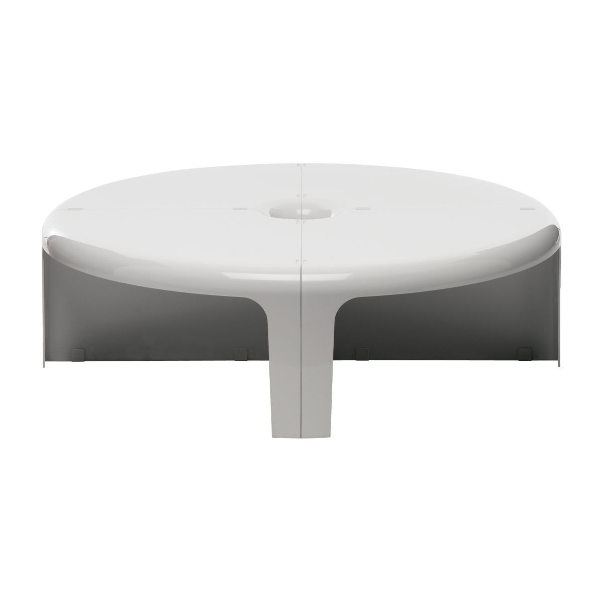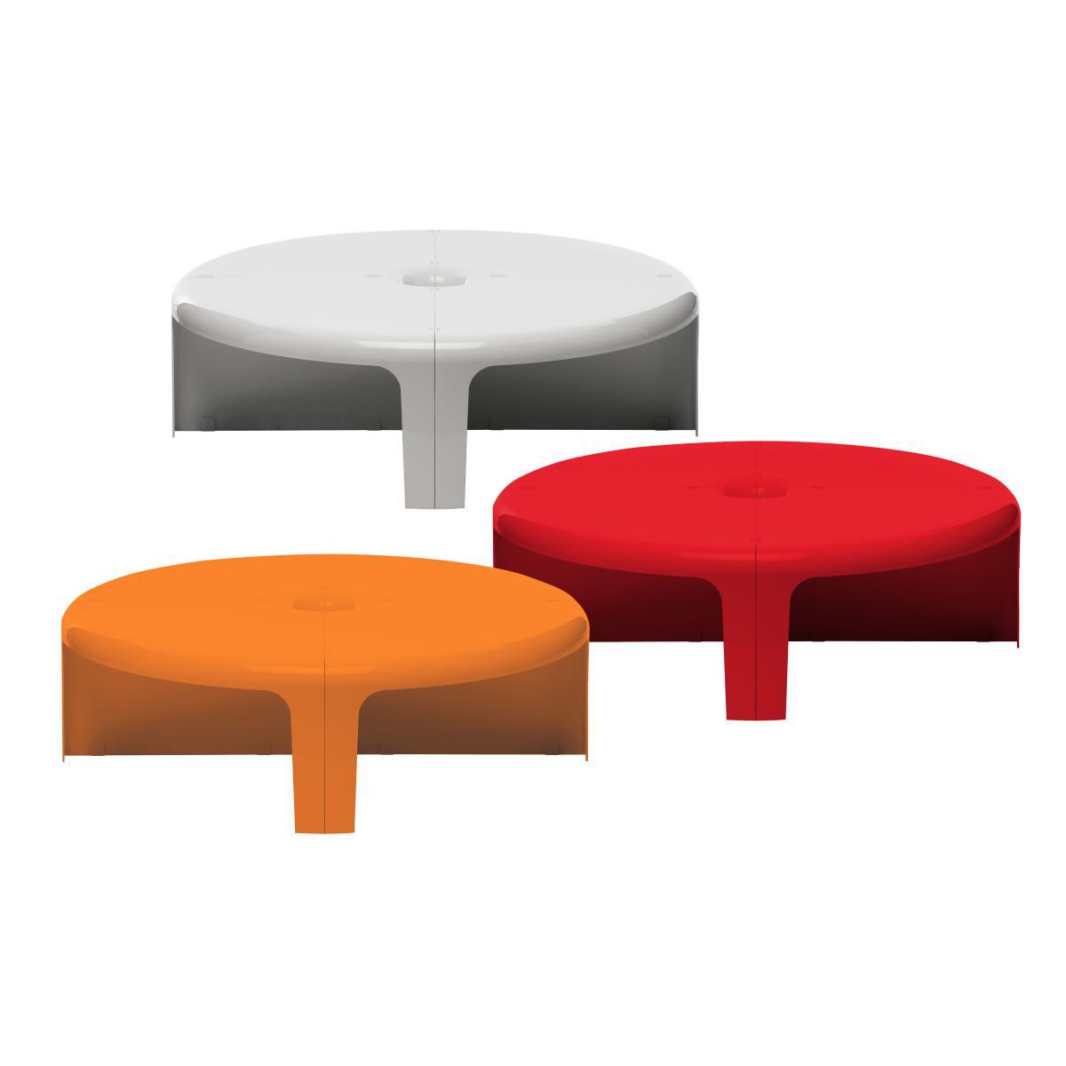 4/4 is a modular coffee table or bookcase provided with special inserts which enable it to be arranged or stacked as wished. It is composed of four identical injection-moulded ABS plastic sections.