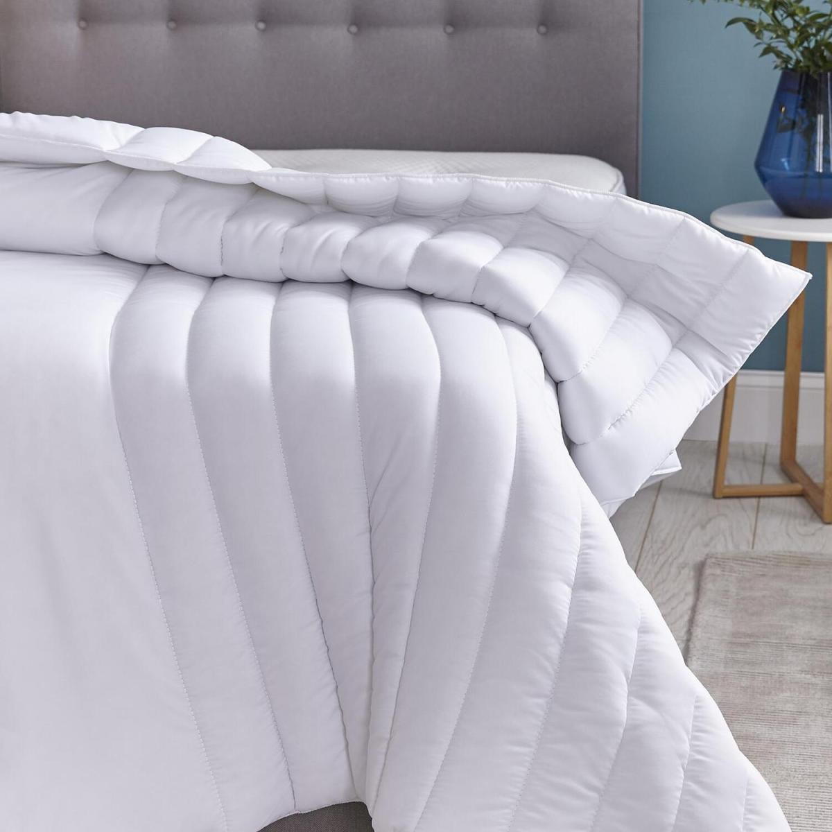 Put compromise to bed with the dual tog Soft Touch Yours and Mine Duvet. This duvet caters to the sleeping requirements of both you and your partner. The duvet ensures that both of you are kept at your own ideal temperature for comfort. The dual tog duvet has a unique two togs in one design. One half features a higher tog and the other a lighter tog, creating a cooler half for those who feel hot at night, and a warmer half for those who feel the chill. Choosing the right duvet is important to allow for a great nights sleep all year round. Our duvets are also easy care so can be machine washed, and are all UK made.