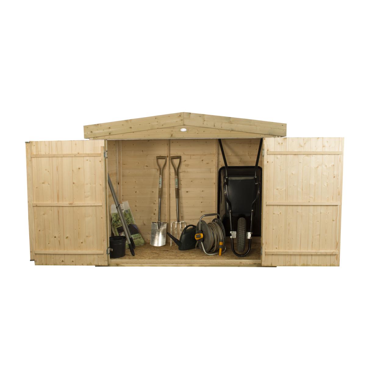 The stylish and spacious Forest Shiplap Apex Outdoor Store is an ideal place to store your large garden items away from the weather. Made from high-quality interlocking tongue and groove boards, this is a great looking alternative to a conventional shed. Designed with double doors to provide easy access, store garden furniture barbecues and even a lawn mower or bike in this large amount of space.