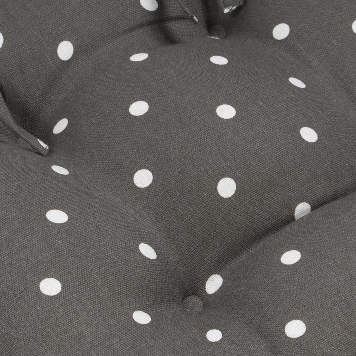 Instantly upgrade your uncomfortable dining room and desk chairs with this 4 Button Seat Pad with Polka Dot pattern. Made from 100% cotton, it's comfortable for long periods of sitting and makes any worn-out chair feel like new again. The 2 ties make it easy to attach to most chairs and can be removed just as easily for portable comfort.