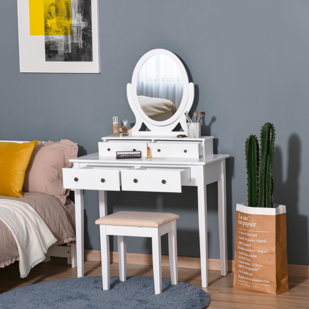 I love this white dressing table and stool set for its clean, classic look that works well in both contemporary and traditional interiors. It's ideal for small bedrooms or spaces where a compact yet functional dressing station is needed. The neutral white finish makes it versatile, blending effortlessly with colour schemes and decor styles, from minimalist to Scandi-inspired setups. For styling tips, consider adding a few personal touches like a statement lamp, a jewellery organiser on the top, or a cosy throw on the stool to create a curated, inviting vibe. Its practical drawers help keep clutter at bay, making it as functional as it is stylish.
