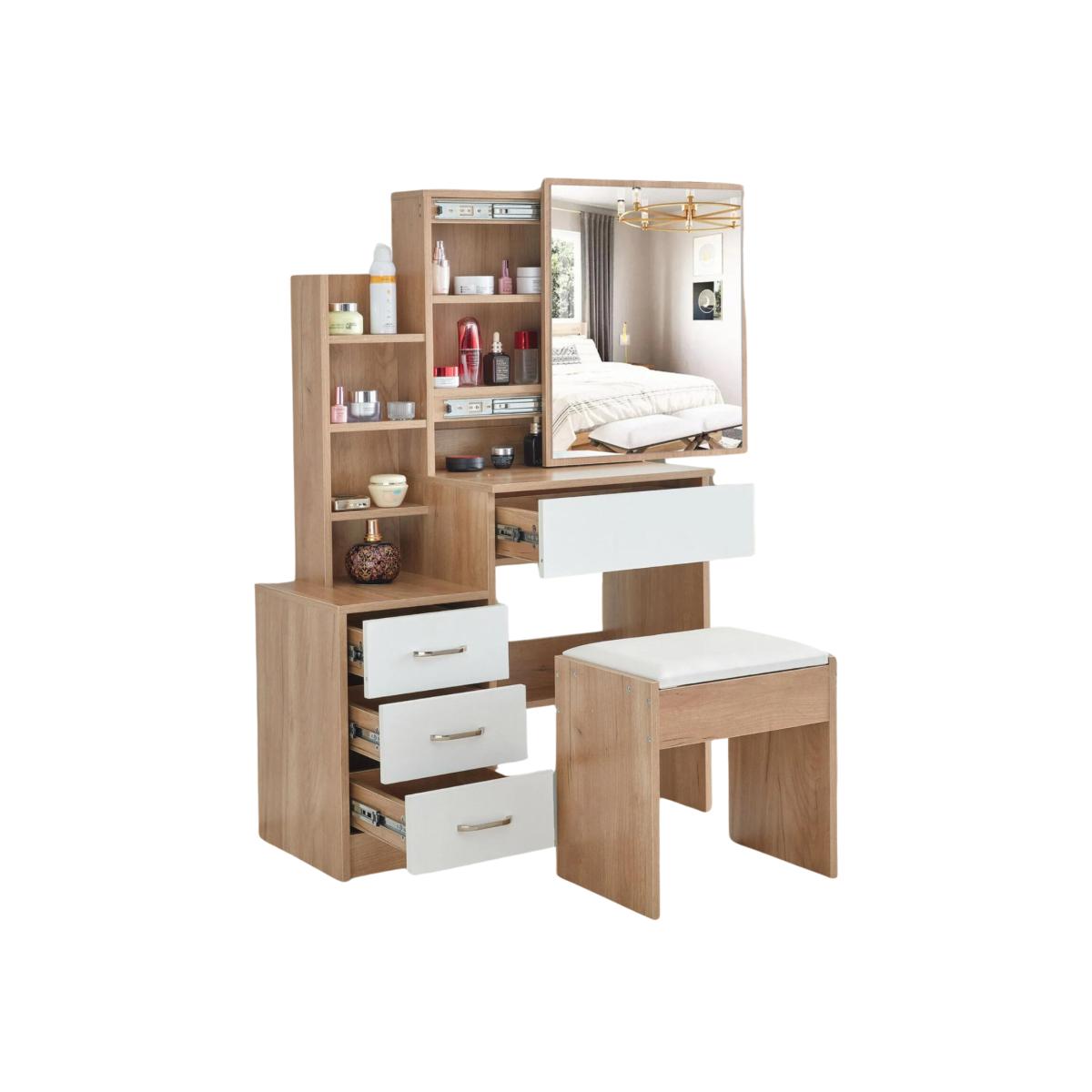 This dressing table features a generously sized sliding mirror that offers a clear and comprehensive view, ensuring you look your best every day. Hidden behind the mirror are a large middle drawer and three shelves, providing ample storage space for your jewelry, perfumes, and makeup essentials. Constructed from sturdy melamine and MDF, this dressing table boasts exceptional durability and a strong load-bearing capacity, offering a reliable and comfortable space for your daily grooming routine. The door handle is crafted from high-quality stainless steel, offering resistance to corrosion and magnetic properties, while also adding a touch of elegance to the design. The sliding channel ensures effortless and smooth operation of the mirror, enhancing the convenience and functionality of the dressing table. With dimensions of 80 x 36 x 120cm for the dressing table and 40 x 29 x 39cm for the stool, this set provides ample space for your grooming needs without occupying excessive floor space in your room. Assembly of both the stool and table, including the mirror, is straightforward and hassle-free. Complete with detailed instructions and a comprehensive assembly kit, setting up this vanity makeup table set is a breeze, ensuring you can enjoy its benefits in no time.