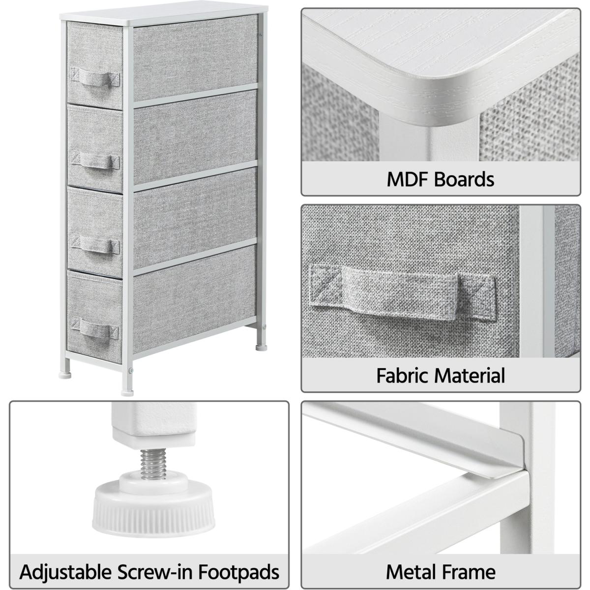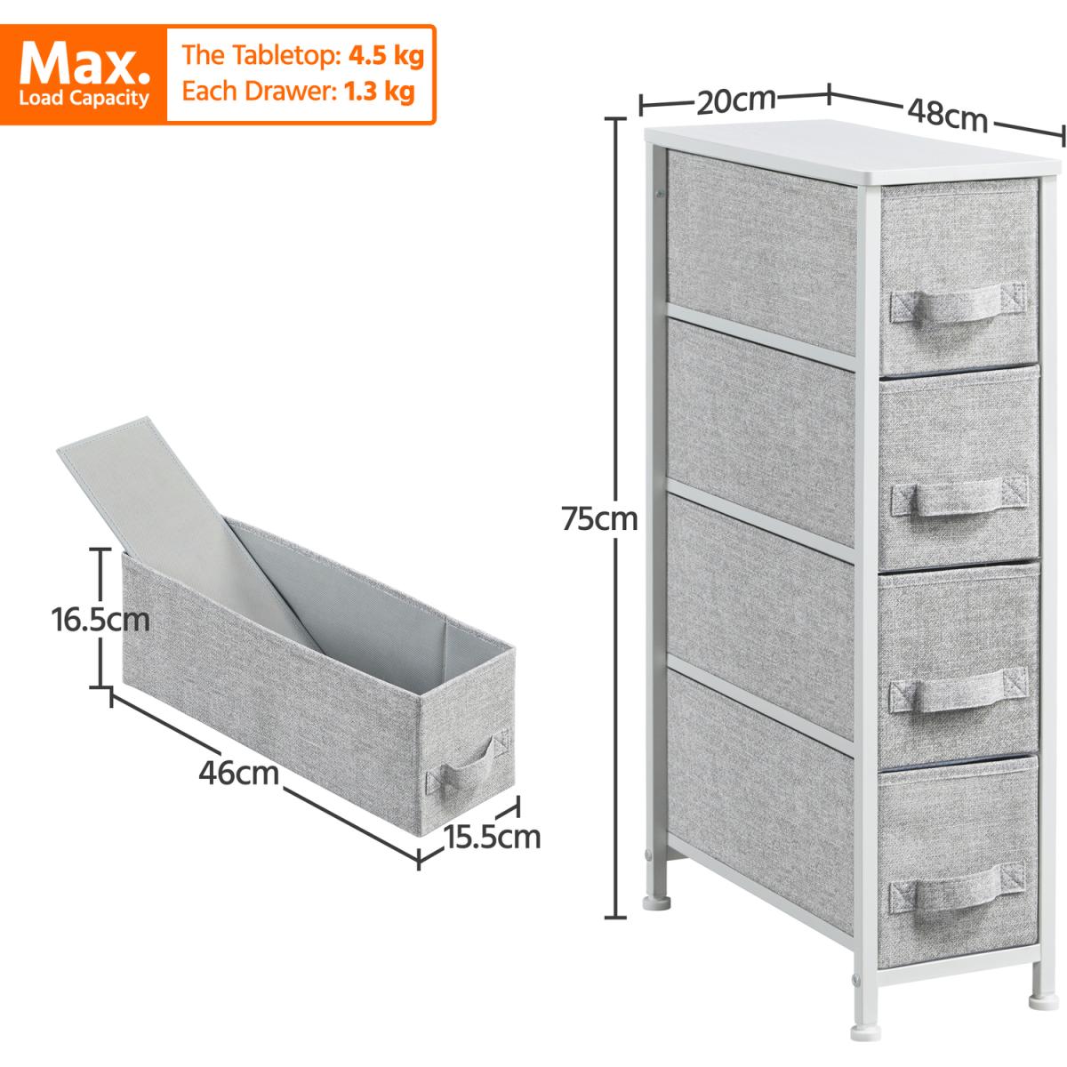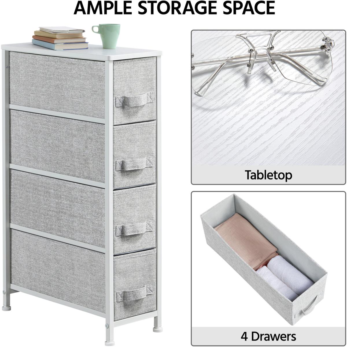 4-Drawer Slim Fabric Storage Tower - Light Grey