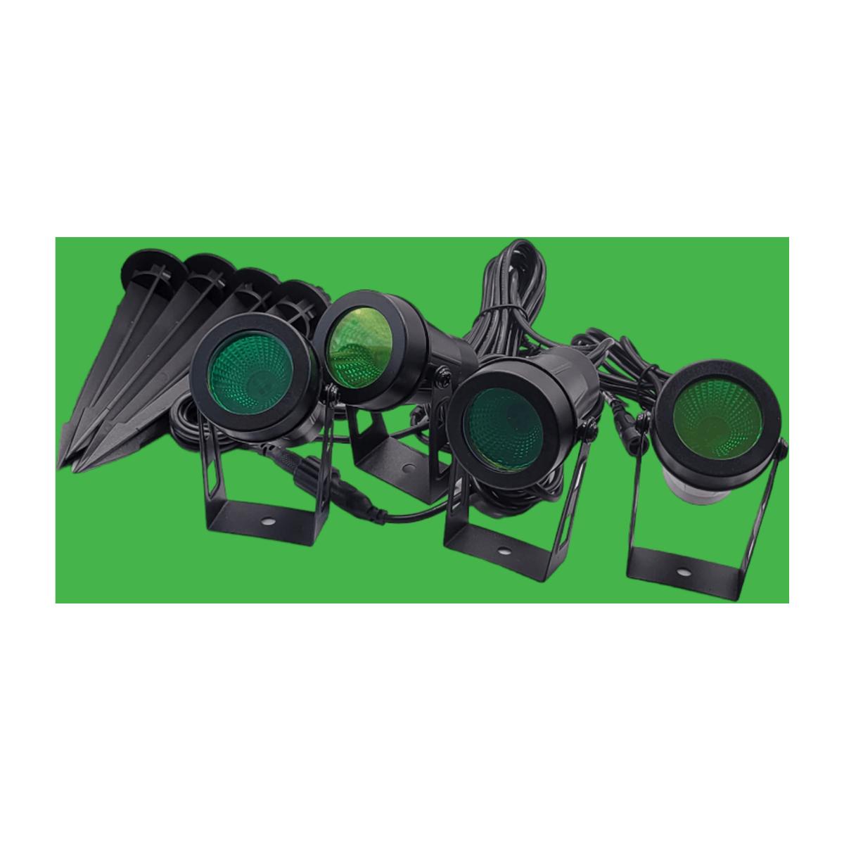 Illuminate your outdoor space with precision and style. This versatile set of 4 mains powered spotlights offers a vibrant touch to trees, gardens, yards, and patios, with unique features: Coloured Illumination: Choose from EITHER BLUE / RED / YELLOW / GREEN / MULTI-COLOUR. Achieve the desired colour with our warm white bulbs and coloured gel filter lenses. Follow the simple instructions provided to create stunning lighting effects. Superior Brightness: With advanced LED chips, these 3W 12V garden spotlights emit 300 lumens each, providing a total output of 1200 lumens. Experience a level of brightness that outshines solar-powered alternatives. Versatile Design: With 45 degree beam angles and 270 degree adjustable heads, personalise your lighting to enhance your outdoor aesthetics. Whether installed into the ground or on the wall, customisation is effortless with included clamping screw knobs and spacers. Package Includes: 4 x Spotlights, 1 x 4.2. M power cable, 4 x Ground Spikes with gaskets & screws, 1 x 3 Pin UK Plug. 4 x Coloured Lens