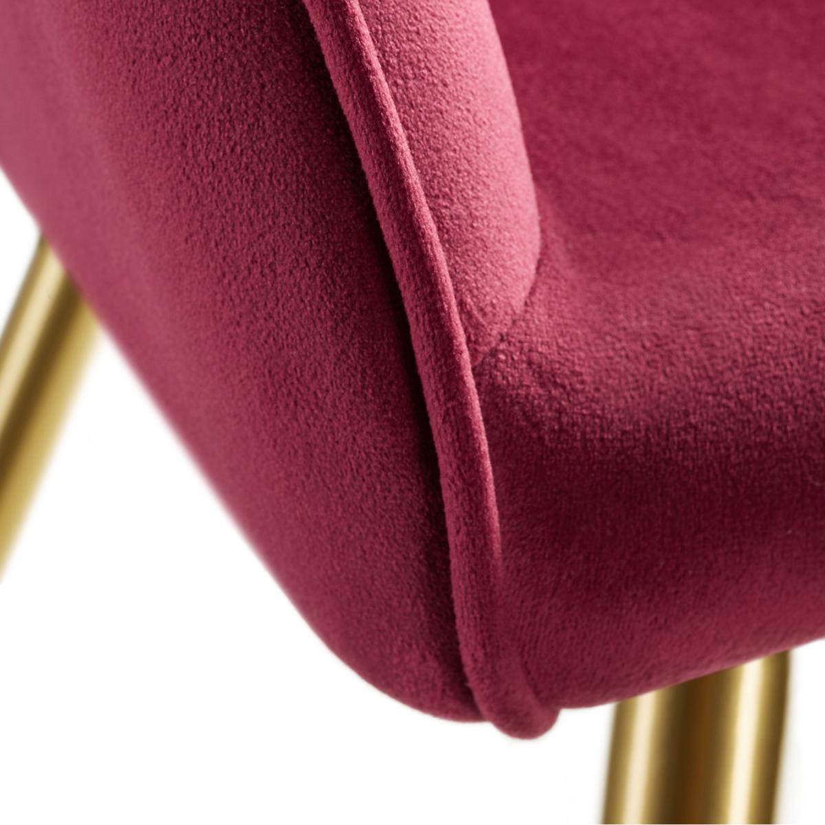 I love the way these chairs bring a sense of luxe to any dining space, thanks to their velvet-look fabric and striking Bordeaux and gold accents. They work beautifully in contemporary interiors, especially when paired with marble or dark wood tables, but can also add a glamorous touch to more eclectic or vintage schemes. Practical styling tips include mixing them with other textured or coloured seating for visual interest, and balancing their bold colour with pared-back tableware and accessories. Their robust finish and padded design make them comfortable for everyday use, while the rich fabric elevates the overall aesthetic.
