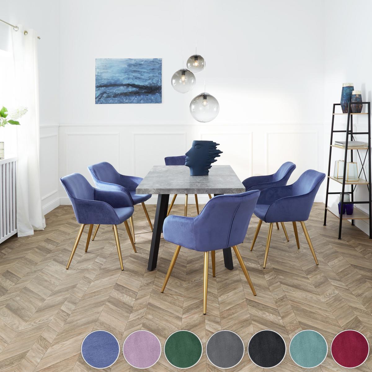This elegant velvet-look padded chair from tectake stands out with its interplay of form and colour. The gorgeous contrast between the seat and legs creates an exciting statement thats sure to turn heads. This chair's comfortable armrests and luscious padding ensure the required comfort. Excellent stability, good durability and exceptional stability make this robust steel frame perfect for long-lasting use.