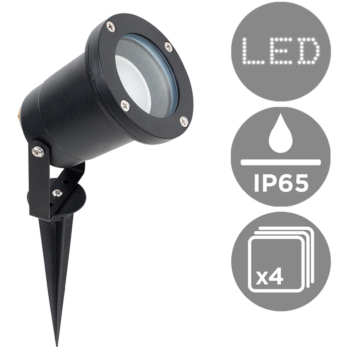 4 Pack Modern Ground Spike Wall Mount IP65 Rated Outdoor Lights In Black Finish - Black