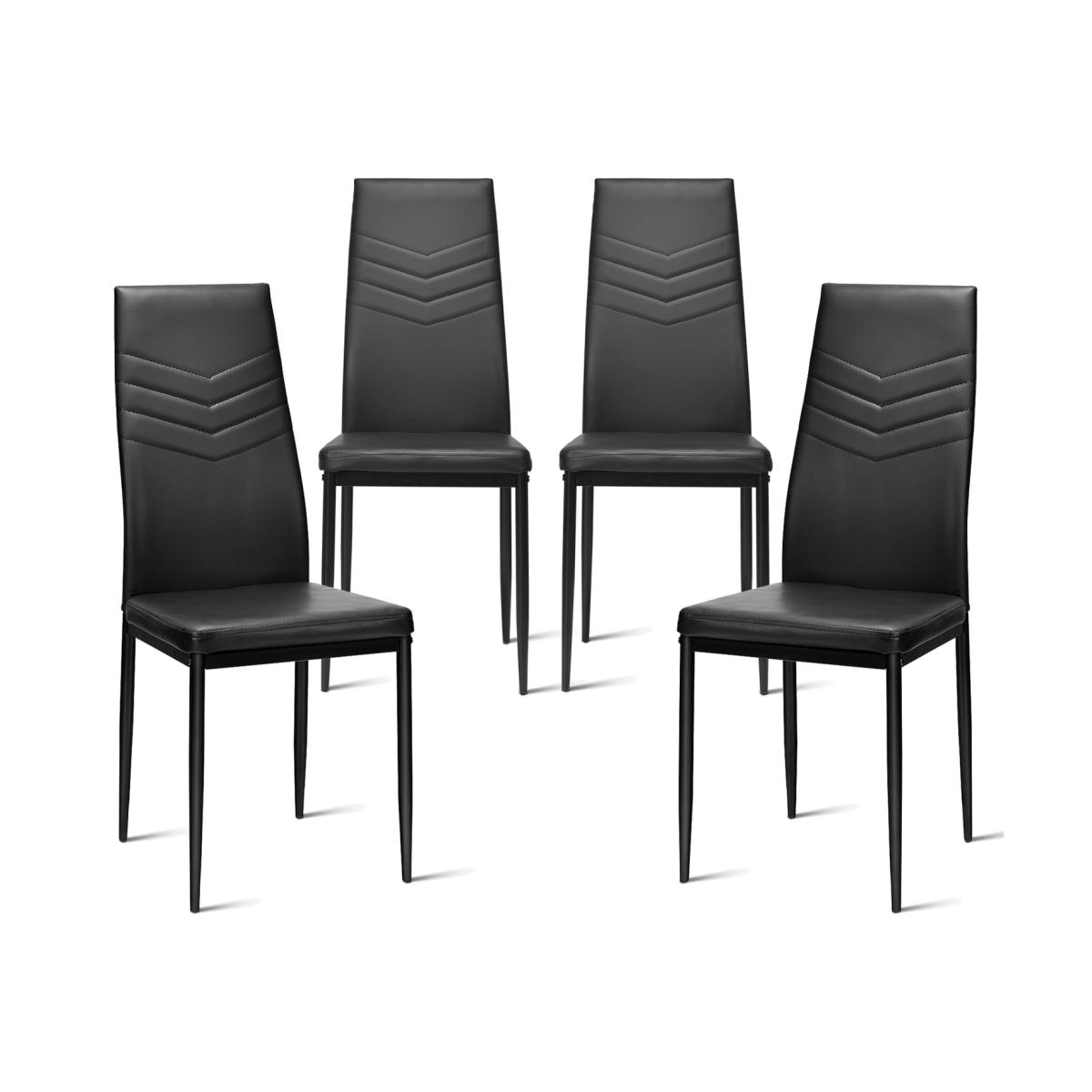 This is our new set of four PVC leather chairs. With simple and elegant design, our chairs are compatible with your home, restaurant, company etc. High-quality PVC leather combining with durable steel frame ensures a longer service life. The sleek metal legs accompanied by nice foot pads make these chairs more stable and safer.