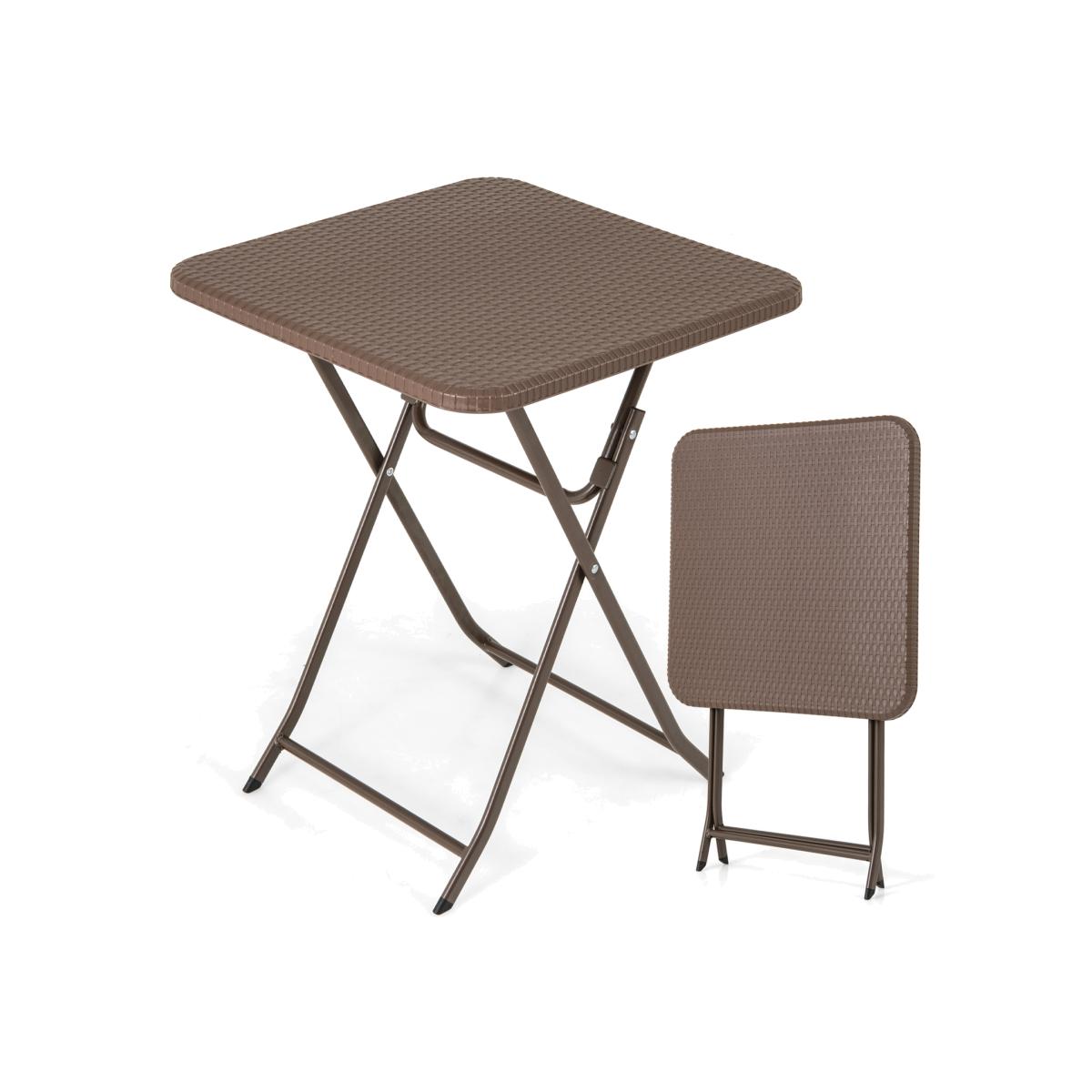 Elevate your outdoor dining experience with our lightweight folding picnic table! This portable table features a robust metal frame with an X-shaped structure, ensuring stability. Its high-density polyethylene (HDPE) tabletop is weather-resistant and easy to clean. Thanks to its lightweight folding design, it's simple to transport and set up, making it ideal for picnics, barbecues, or camping trips. The square design comfortably seats 4 people, while smooth rounded corners enhance safety. 4-Person Square Patio Dining Table - Brown