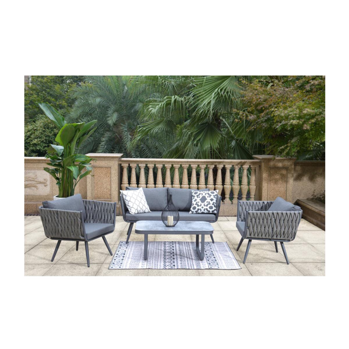 I love this set for its contemporary yet relaxed vibe, making it a versatile addition to any garden or outdoor space. The rope detailing adds a touch of seaside charm, so it works well in modern patio areas or even coastal-themed gardens. It’s practical too-neutral tones and weatherproof materials mean it’s low maintenance and durable. For styling tips, consider layering with outdoor cushions and throws in contrasting or complementary colours to add texture and comfort. It pairs beautifully with minimalist surrounds for a sleek look, or with lush greenery and decorative lanterns for a cosy, inviting atmosphere. This set is a smart choice for creating a stylish, functional outdoor lounge.