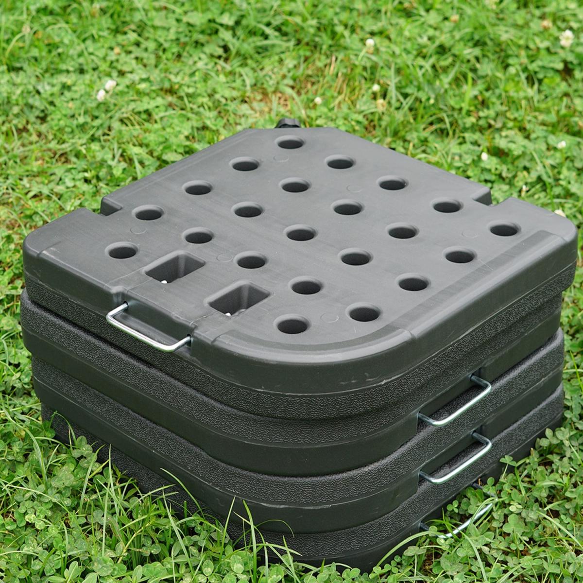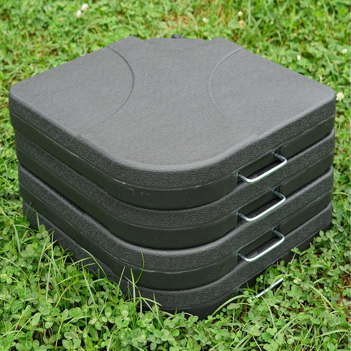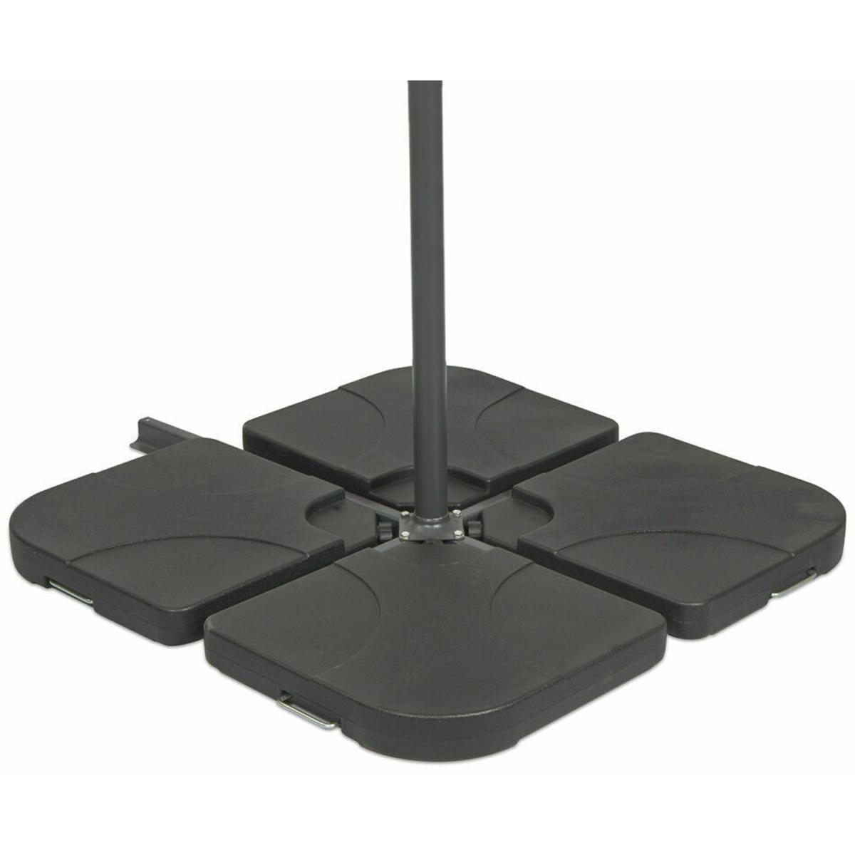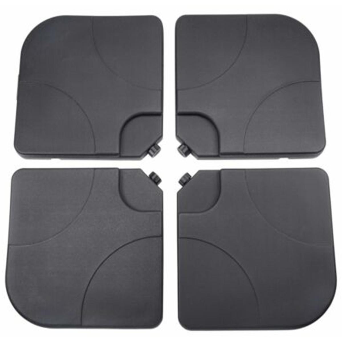 Gr8 Garden 4 Piece Heavy Duty Cantilever Banana Parasol Base Patio Outdoor Garden Sunshade Umbrella Holder Stand Hanging Weights Set. Keep your parasol sturdy and stable with our innovative four-piece parasol base from Gr8 Garden. Each of the four pieces are lightweight when unfilled, making them easy to place. Once you have chosen their position, simply fill with water, sand or a combination of the two. Once filled, the pieces will become heavy and weigh the parasol down securely. Please note: You will need a funnel to fill the base with sand. The total weight of all 4 parts will weigh 16kg-30kg when full so please lift with care