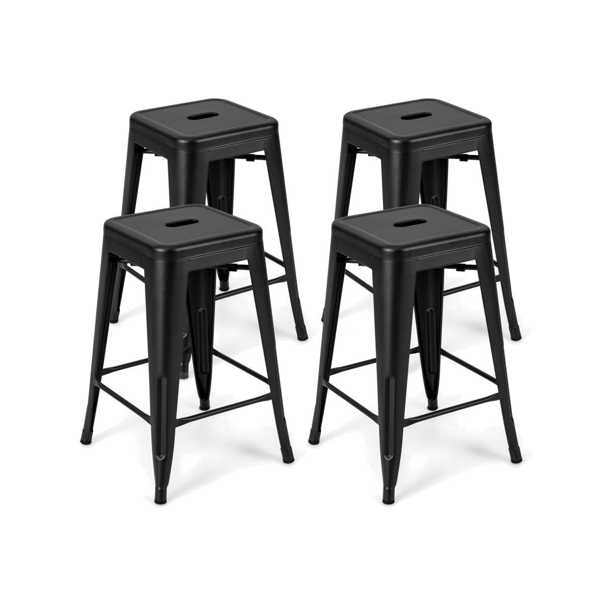 Our 61cm bar stools bring a touch of texture to your kitchen, dining room or home bar. With plastic sprayed surface, our stools are rustproof, wear-resistant and easy to clean. Besides, 4 solid metal legs with anti-skid foot pads help it to stay steady on the ground. X-shaped design under the seat adds more stability. When not in use, you are allowed to stack all stools up and store them in any corner.