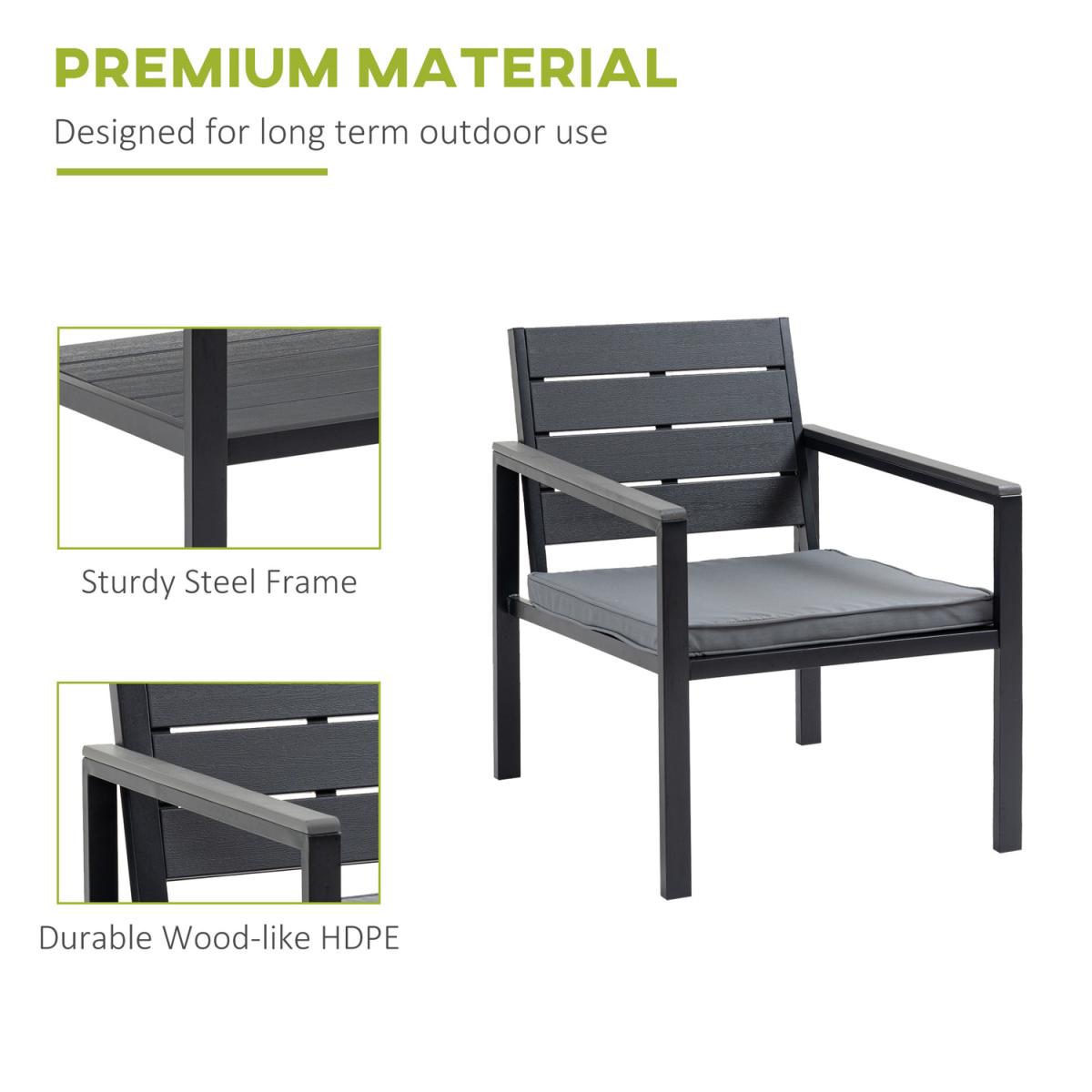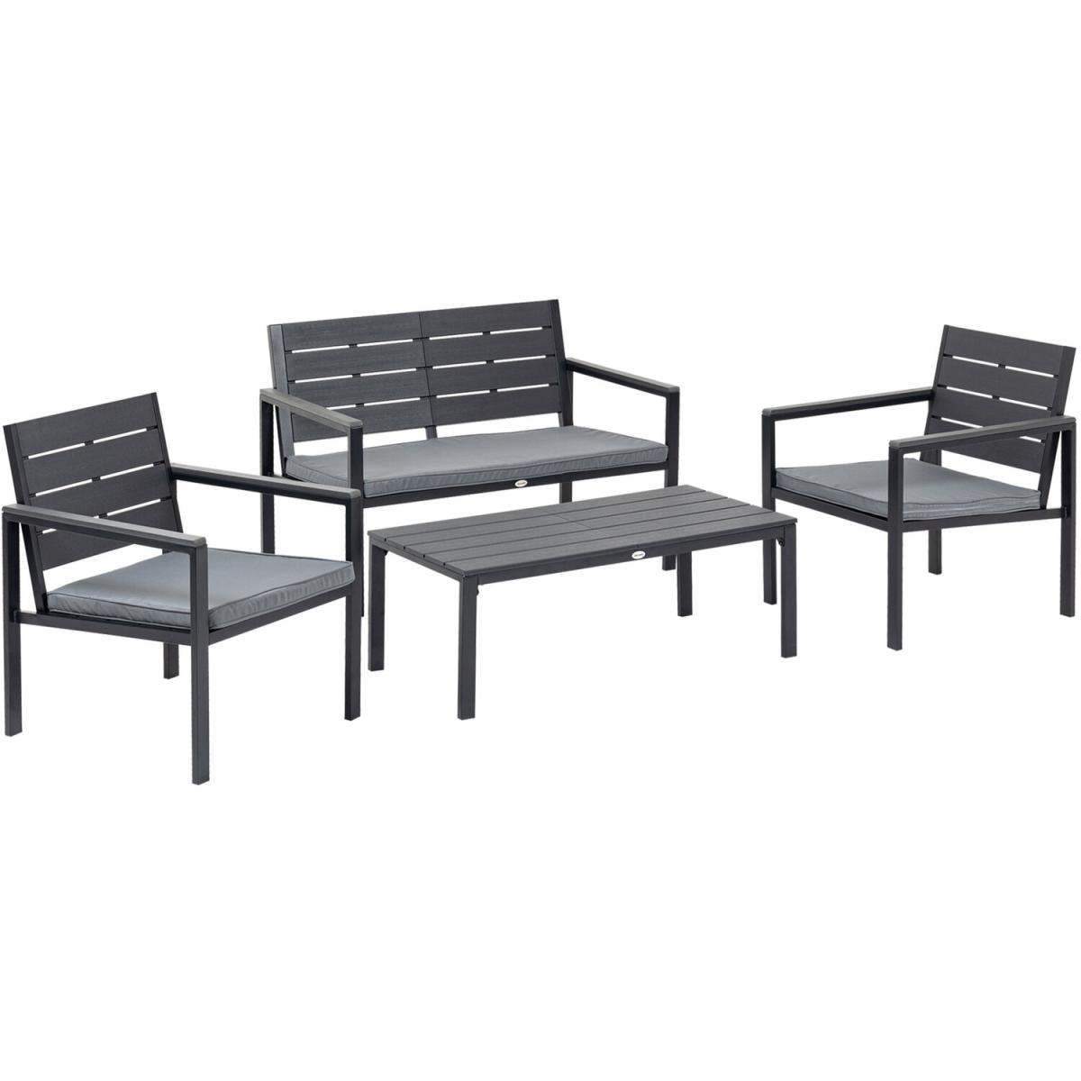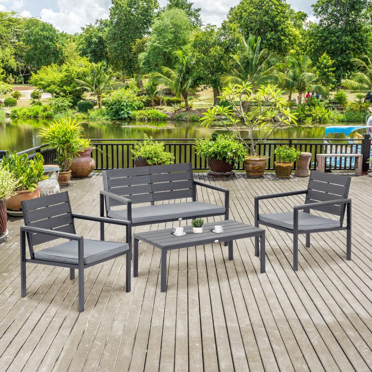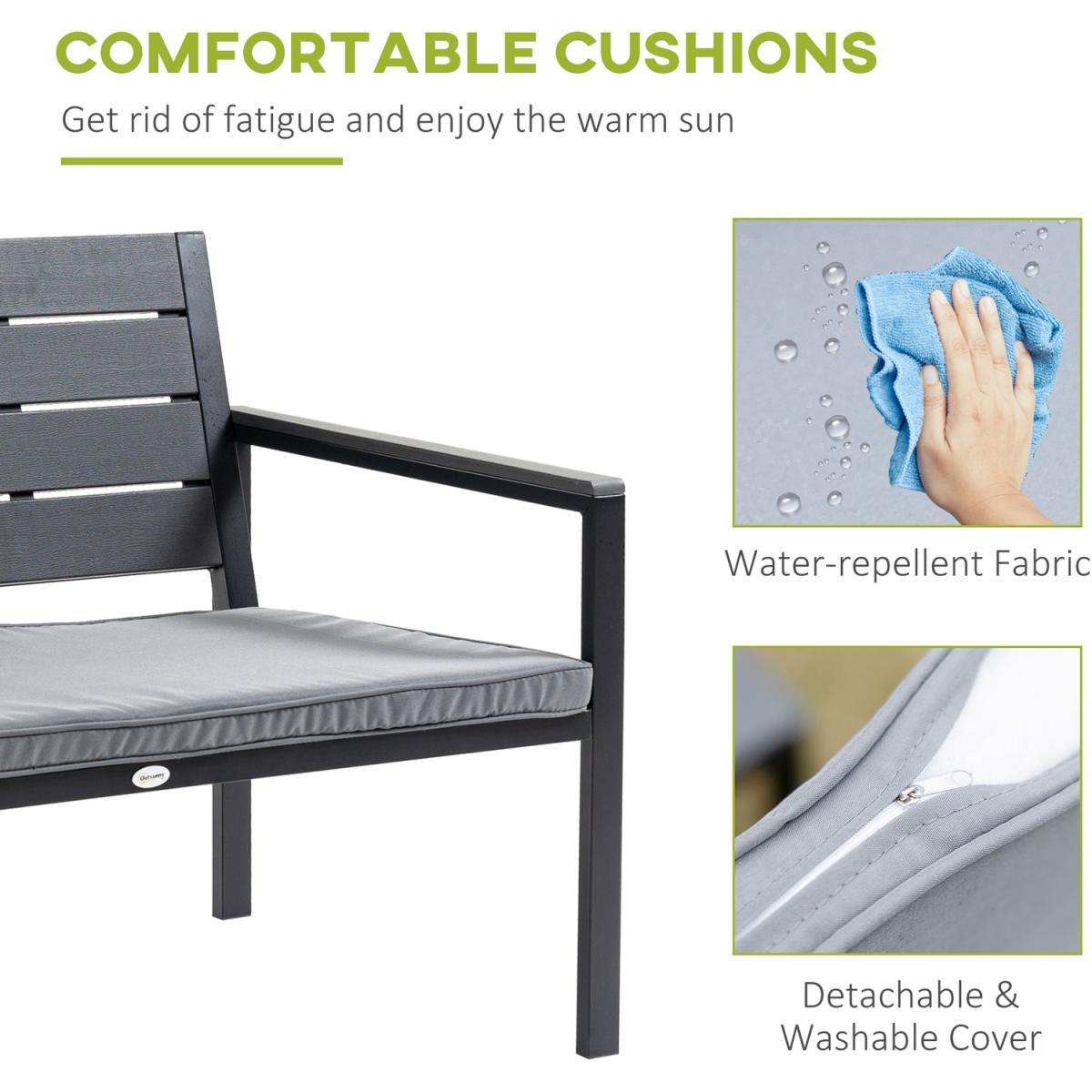 Look to the deluxe life with this garden seating set from Outsunny. Included are one love seat, two armless chairs, and a coffee table, providing plenty of room for the family. Made from sturdy steel, the frame of each piece is solid and will completely support you as you relax. Each seat comes with a soft seat cushion for ultimate comfort. A fantastic addition to your garden and outdoor areas.