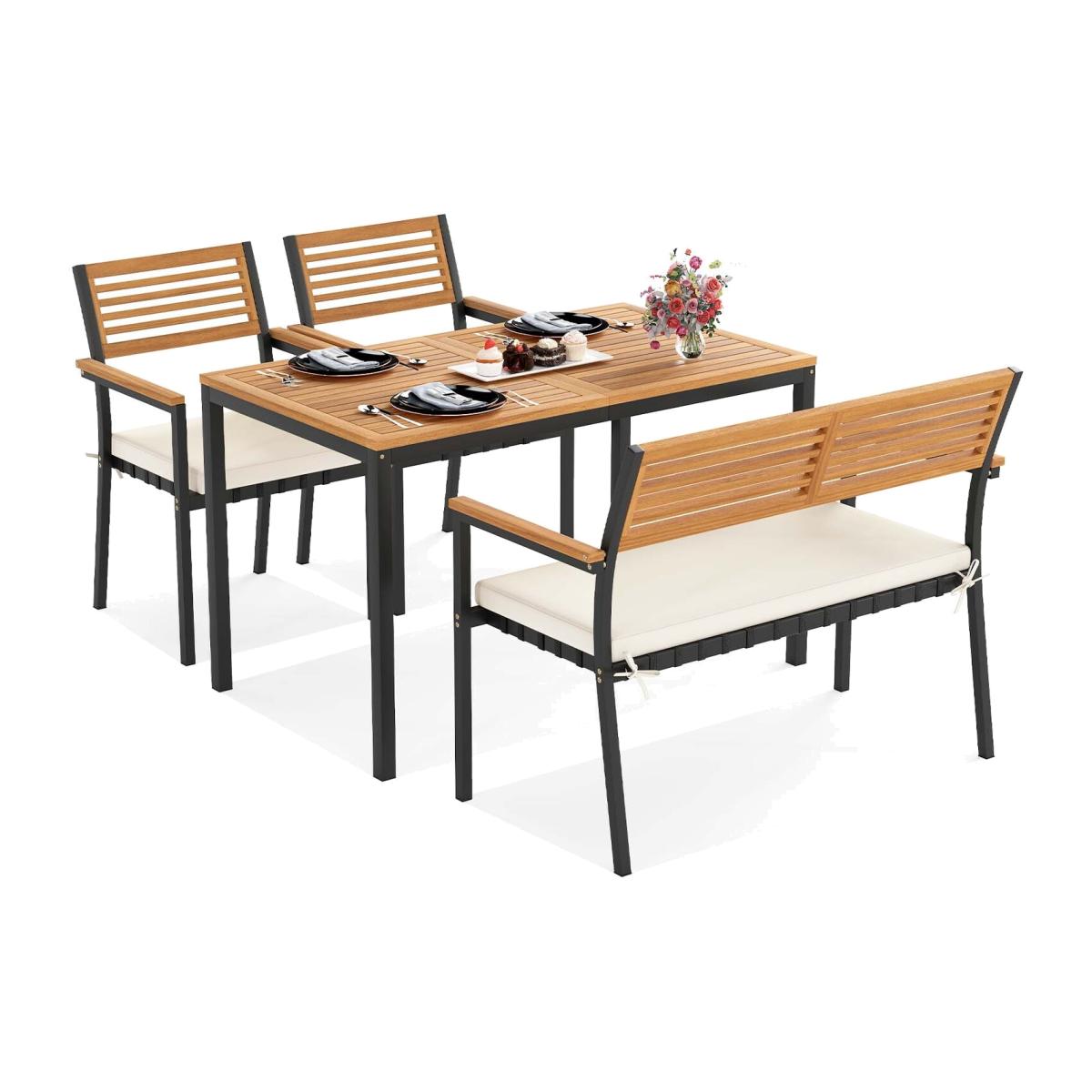Elevate Your Outdoor Dining Experience! Our stylish 4-piece dining set features a rectangular table, two armchairs, and a spacious loveseat, all meticulously crafted from reliable acacia wood and sturdy metal. This set not only offers a robust build for long-lasting use but also adds a touch of elegance to your patio or garden. The clever design allows for the chairs and loveseat to be tucked neatly beneath the table, ensuring easy storage and maximizing your space when not in use. 4-Piece Patio Dining Set - White