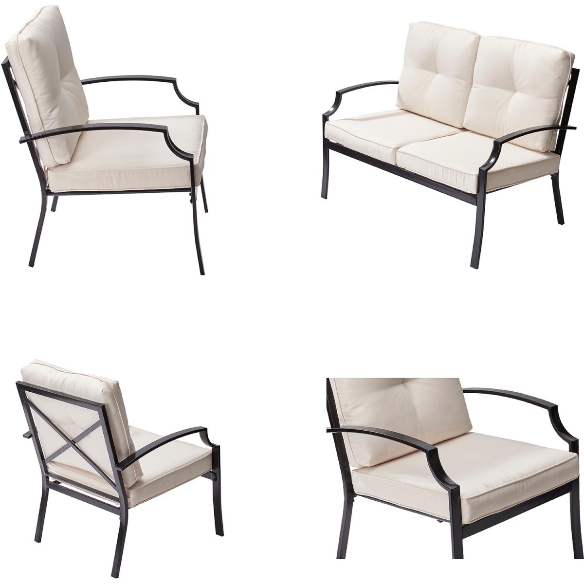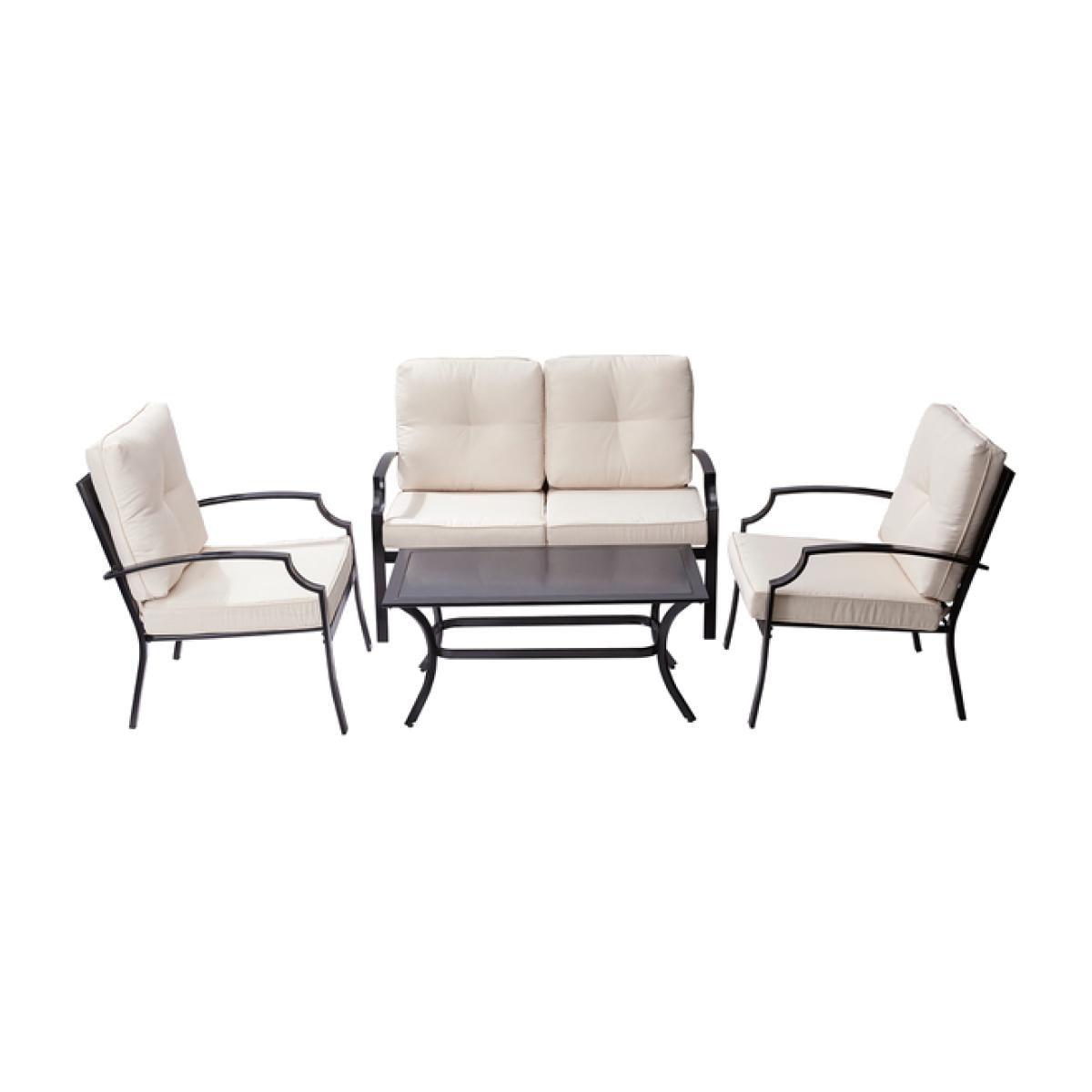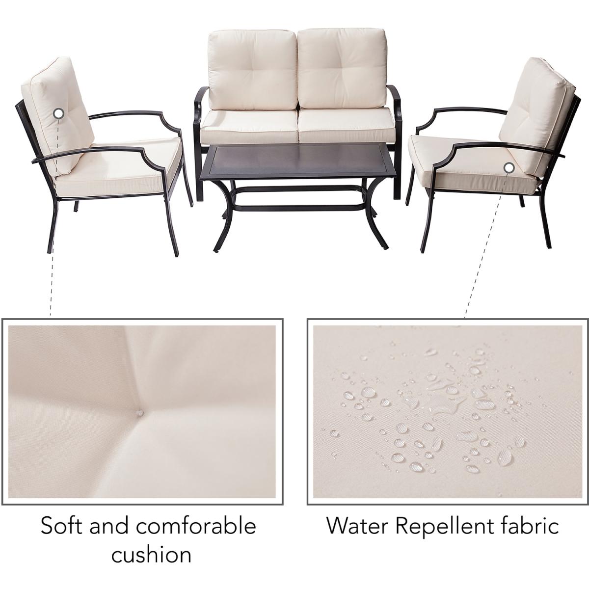 Teamson Homes 4-piece Patio Conversation piece sofa set is the perfect addition to your garden, conservatory, or adult shed! Beautifully made this stunning sturdy black metal frame patio furniture set is made of powder-coated steel, guaranteeing a stronger and rust-resistant experience. This conversation set comes complete with 2 individual chairs, a loveseat that accommodates 2 people, and an attractive coffee table, allowing you to enjoy outdoor entertainment with your friends and family. For extra comfort and style, the set comes complete with soft, water-resistant cushions, which can be wiped clean. To avoid scratches to the flooring area, all chairs and tables come with rubber tips to the bottom of all legs. For extra storage, the included table features a shelf under the tabletop. Teamson is a global lifestyle home designs brand brining joy into every home through beautiful quality pieces made for stylishly comfortable everyday living. Teamson Home is our flagship brand continuing our tradition of quality design collections and pieces for the home including versatile indoor and outdoor furniture, lighting and accessories. PATIO SEATING SET: ideal for any garden, patio or indoor space. This conversation set comes complete with 2 chairs, a 2-seater loveseat sofa and a coffee table, allowing you to enjoy outdoor entertainment with your friends and family. Seat Height: 14m and Seat Depth 58.4cm Weight limit 113.4kg. COMFORT:Chairs and loveseat feature a curved armrest design for a sleek and stylish look, and the slightly reclining seats backs allow you to lean back and relax. REMOVEABLE CUSHIONS: Complete with removeable cushions, offering convenient storage and cleaning. Cushions are long-lasting and comfortable. DURABILITY:The Frame of the whole conversational set is made of powder-coated steel. This guarantees that the furniture is strong and durable. Featuring rubber table leg tips which help you avoid leaving scratches on the floor as you move the chairs.