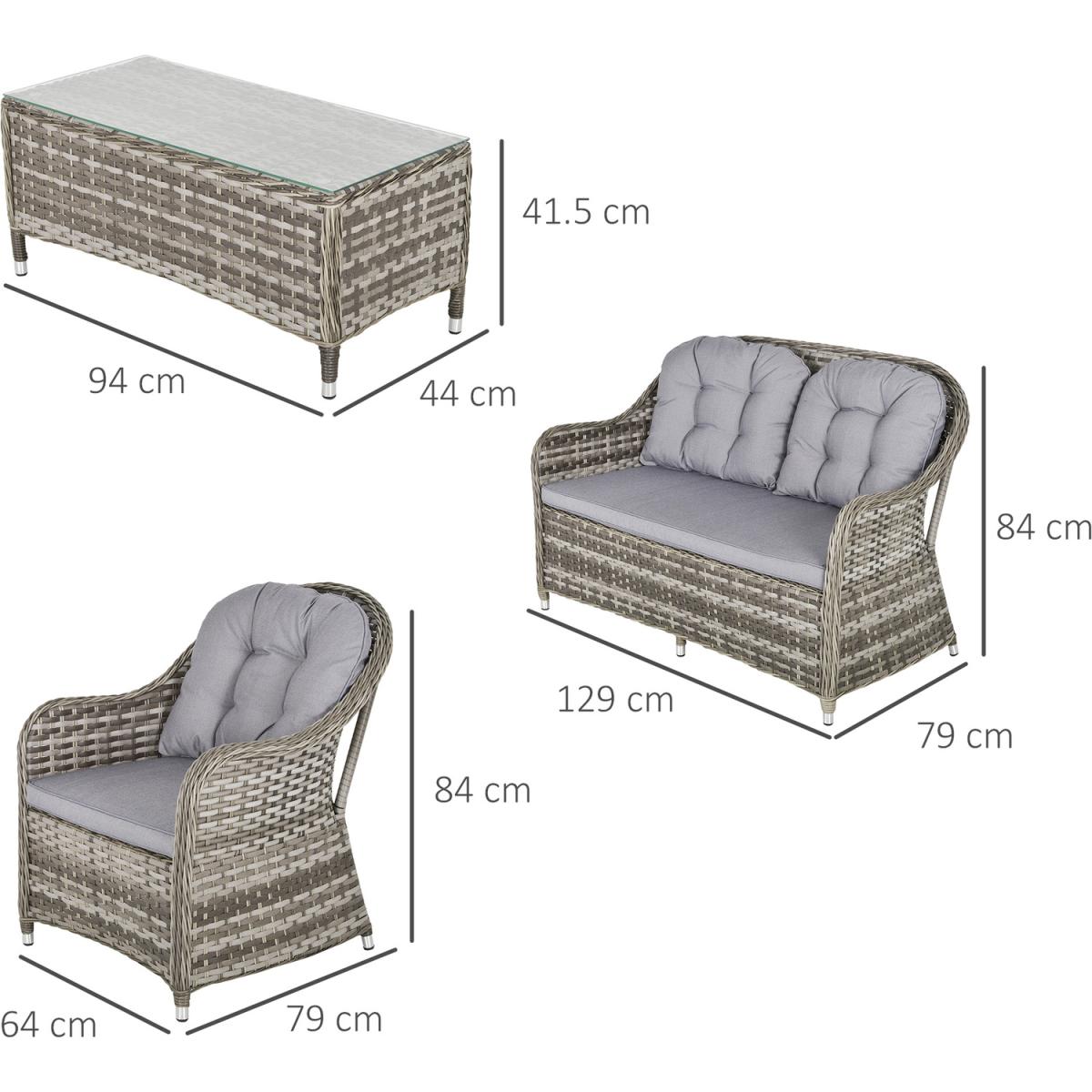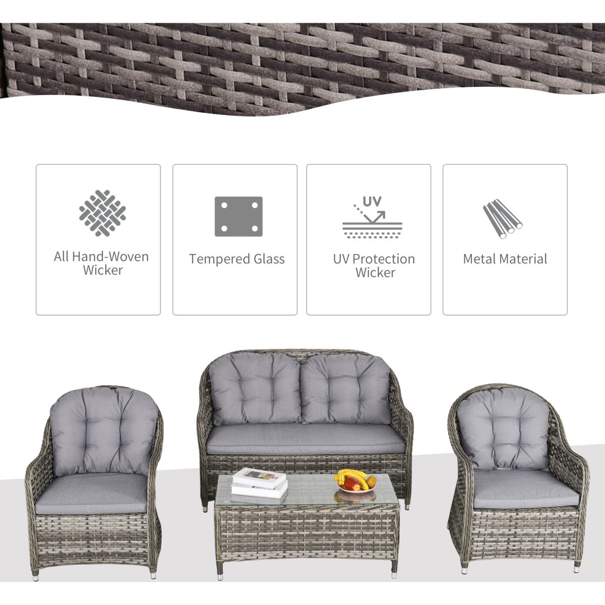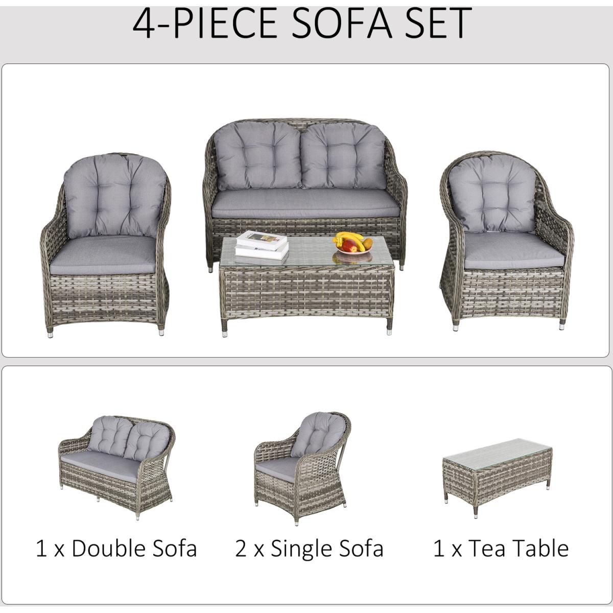 Bring the whole family together outdoors this summer, thanks to this conservatory furniture from Outsunny. It comes with two chairs, a double sofa and table. The frames of the garden furniture sets are made from tough and durable aluminium, wrapped in weather and fade resistant rattan for double the protection and durability. Outdoor furniture is easy to clean to keep it fresh and beautiful. Finished with seat and back cushions on each piece - you'll find it hard to get out once settled in.