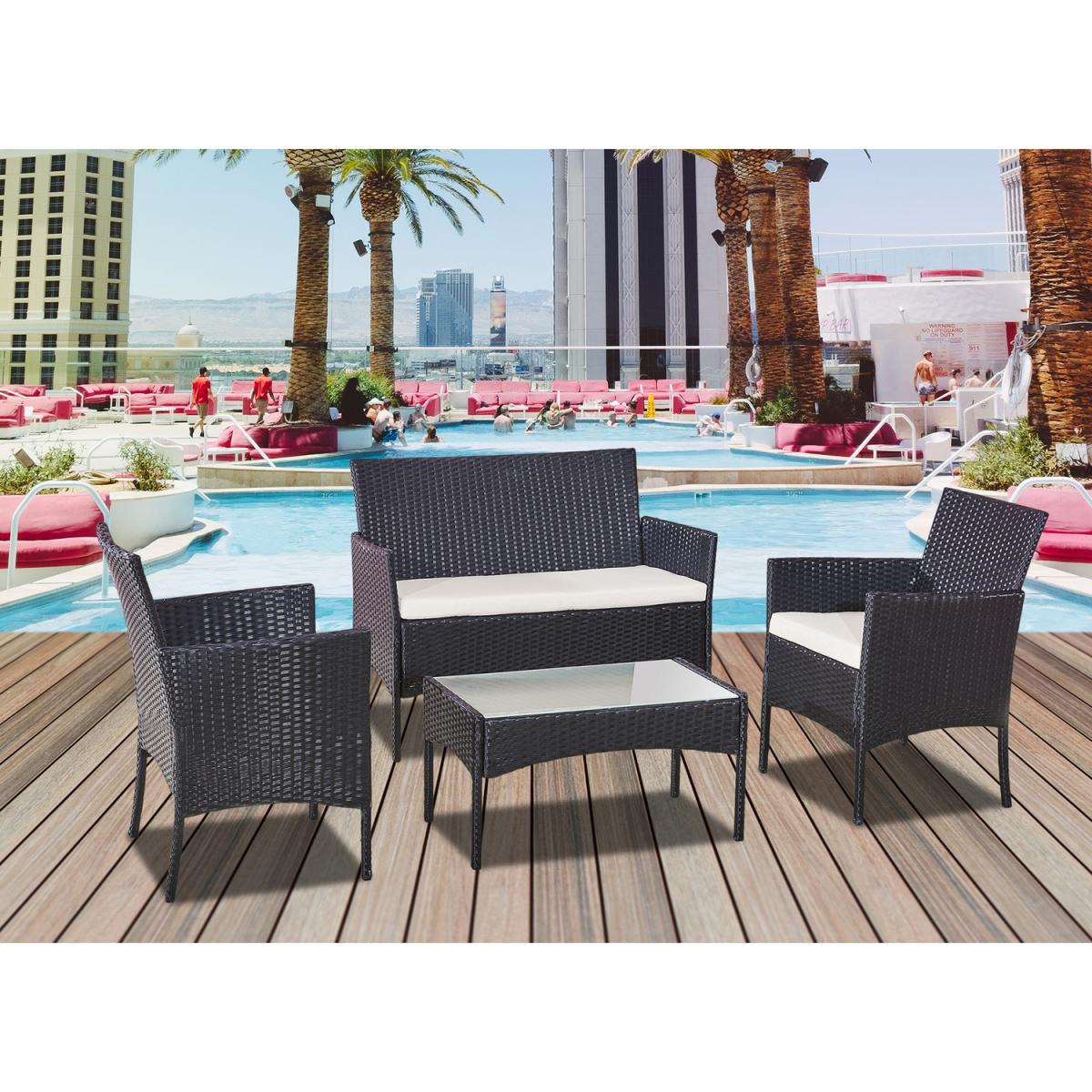 A complete elegant outdoor/Indoor furniture set for you, your friends, and your family to enjoy! The simple contemporary design of this patio set suits a range of tastes and preferences, which complements any Outdoor/Indoor living space. This elegant patio set is compact and does not require a big area to place. Highly suitable for limited area! This patio set features a classy and comfortable white fabric cushion, which matches with a rich rattan material. Simple and minimal assembly is required.