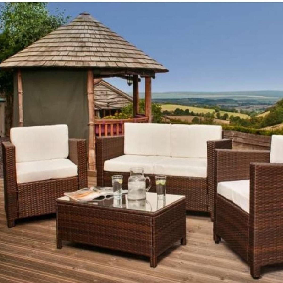 Featuring a contemporary design with comfortable cushioned seating, this rattan set makes a great addition to your patio, garden, or conservatory for entertaining guests or enjoying your morning breakfast in comfort. This set includes a wonderfully cushioned sofa and two armchairs with wide armrests with gently curving backrests for comfortable support and a low coffee table with a tempered glass top with interwoven frame finish. Made from high-quality poly-rattan material that is UV resistant to prevent colour fading and woven over a sturdy metal frame to provide durability over the years and requires no maintenance. The dining table features a scratch-resistant tempered glass top for safety and resilience.