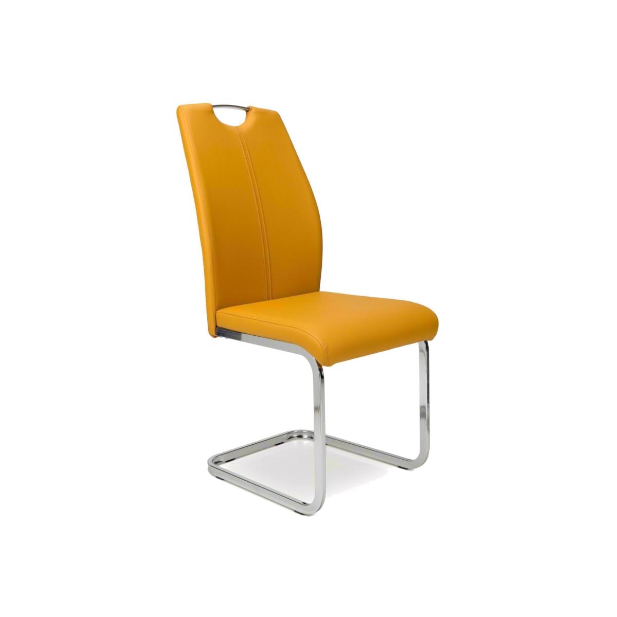 4 Piece Set Of Yellow Leather Modern Dining Chairs With Chromed Cantilever Legs - Yellow